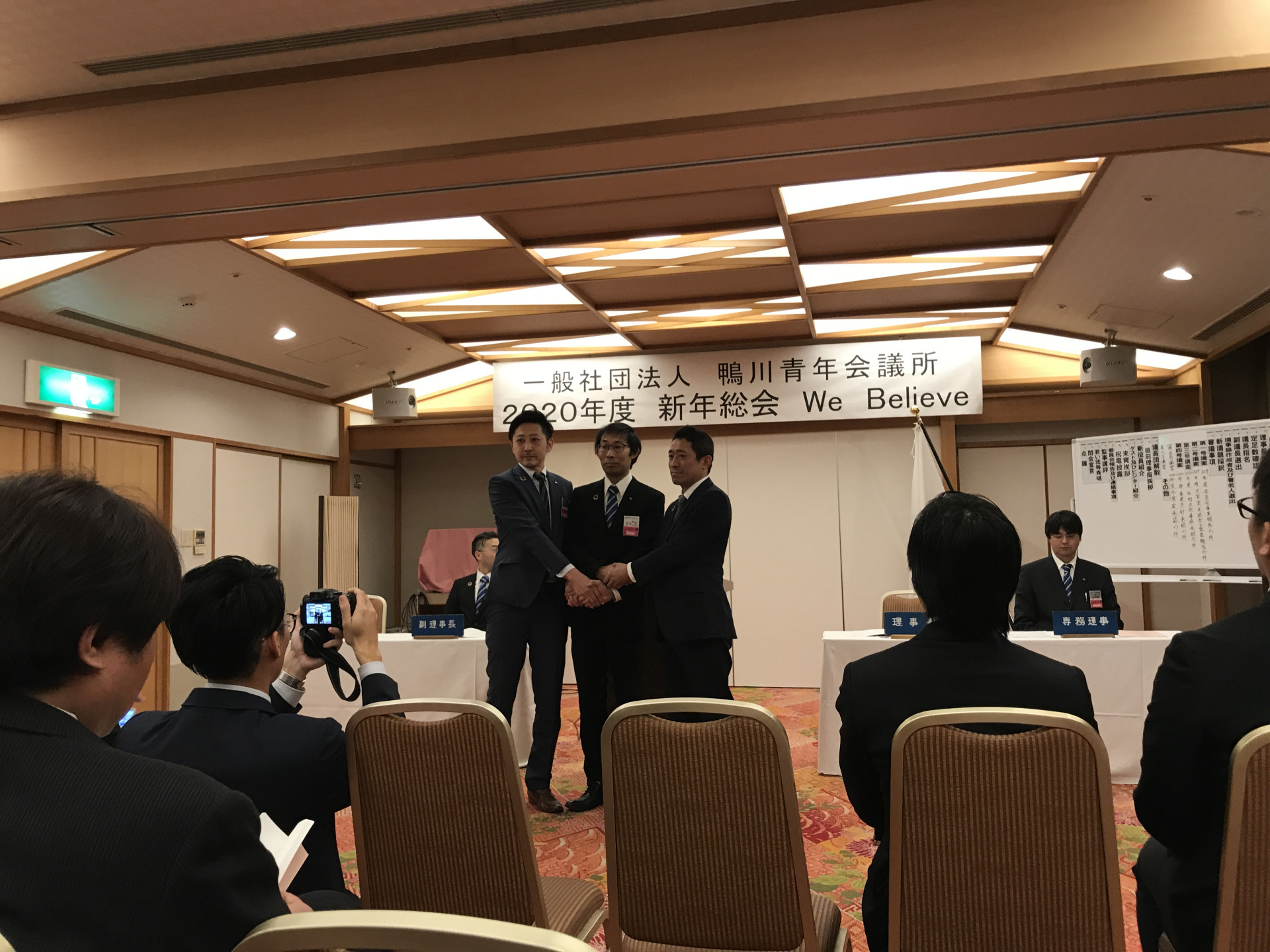 夜、鴨川ホテル三日月を会場に行われた、一般社団法人鴨川青年会議所の新年総会・新年会に出席する。