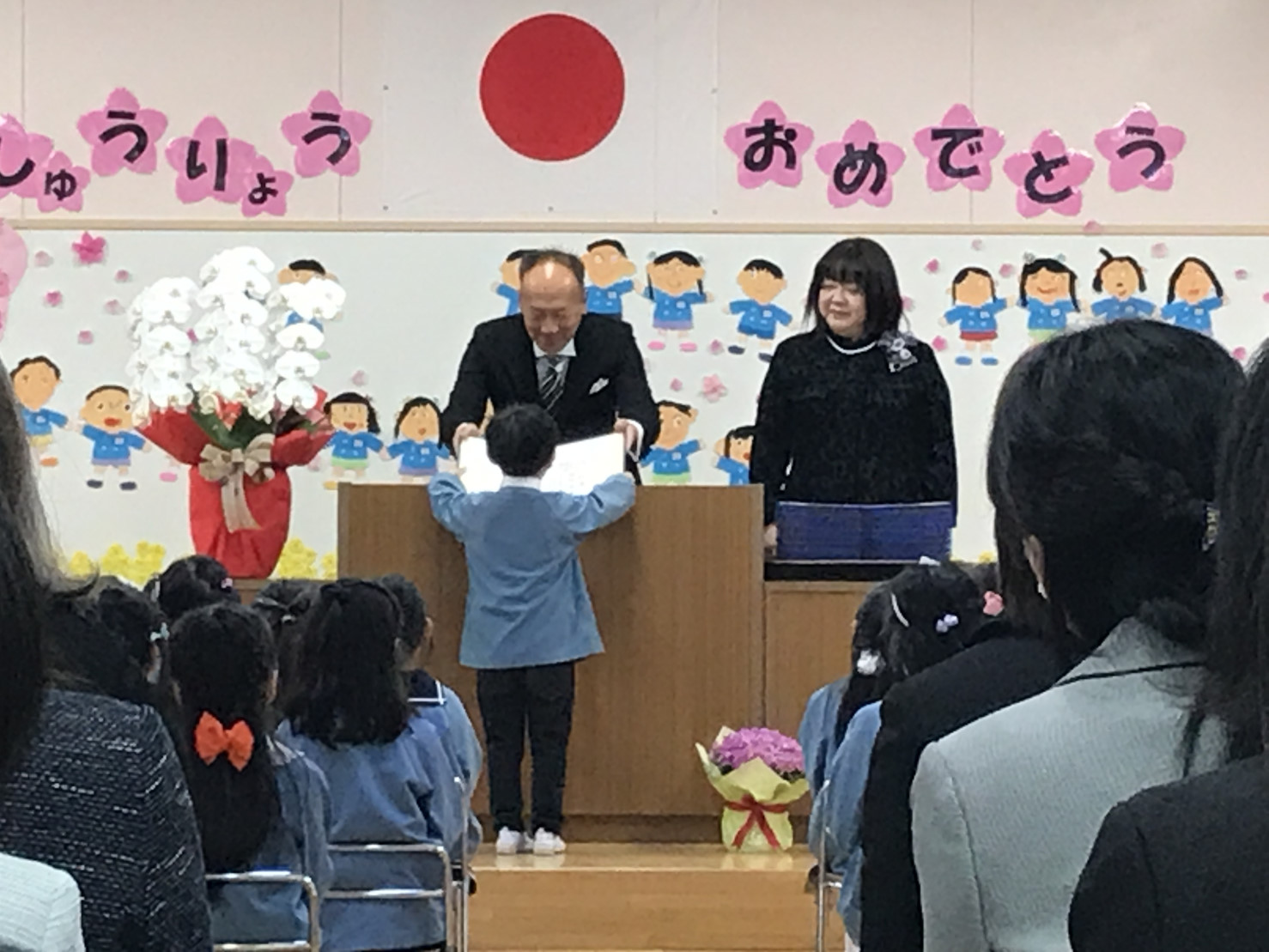 今年度から幼稚園も統廃合し、天津小湊幼稚園として出発したわけであるが、なんとその新生幼稚園の「第1号」の修了証書であった。