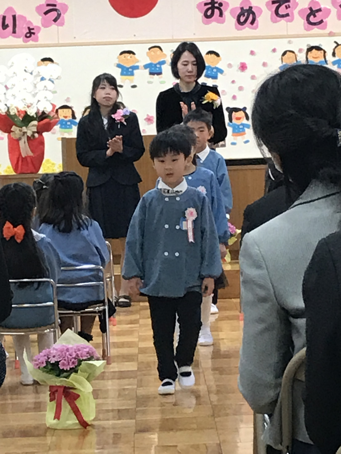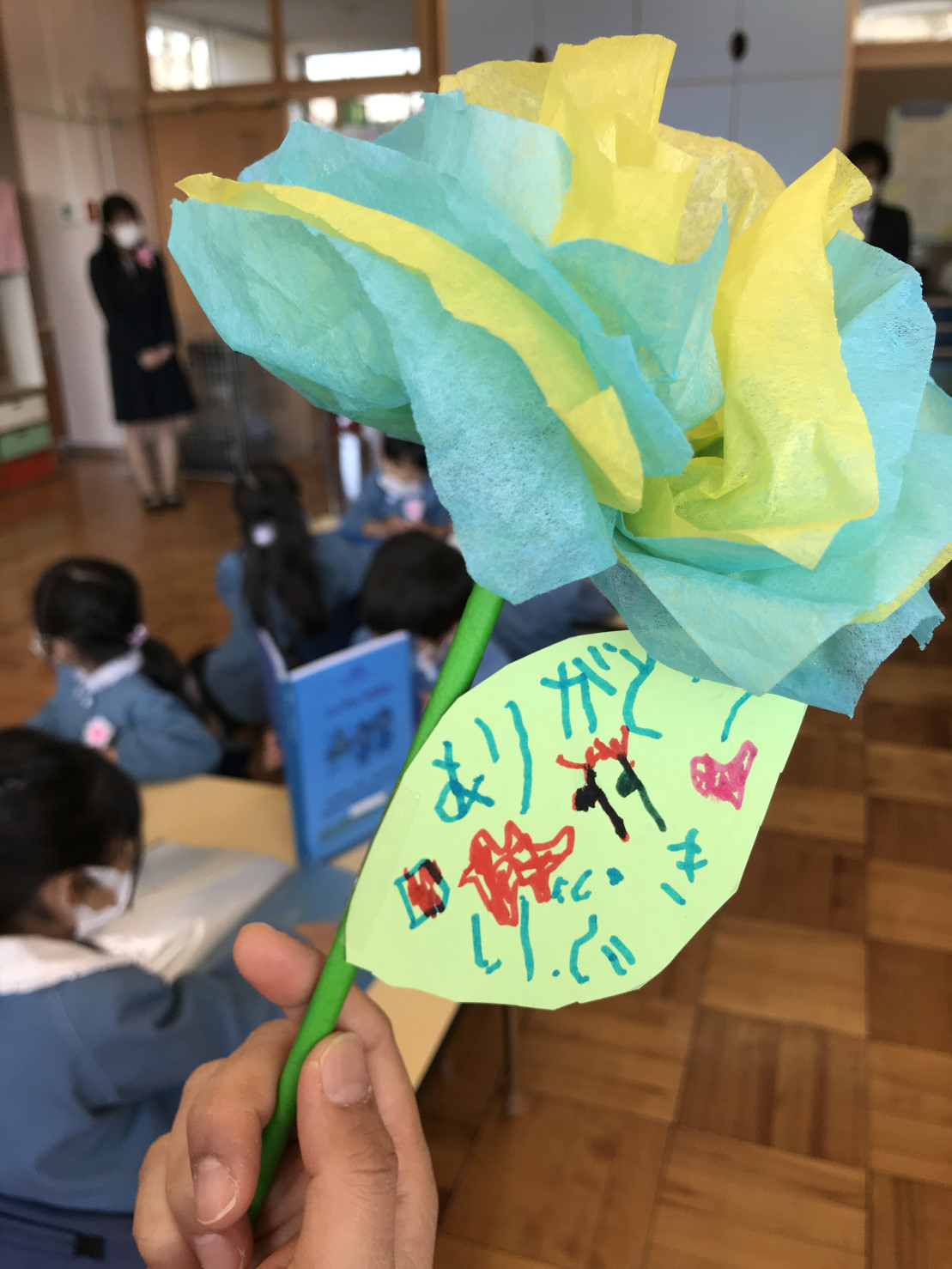 その後、特別なプレゼントをもらい、最後は校庭で在園生に見送られ、また花の鉢をプレゼントされた。