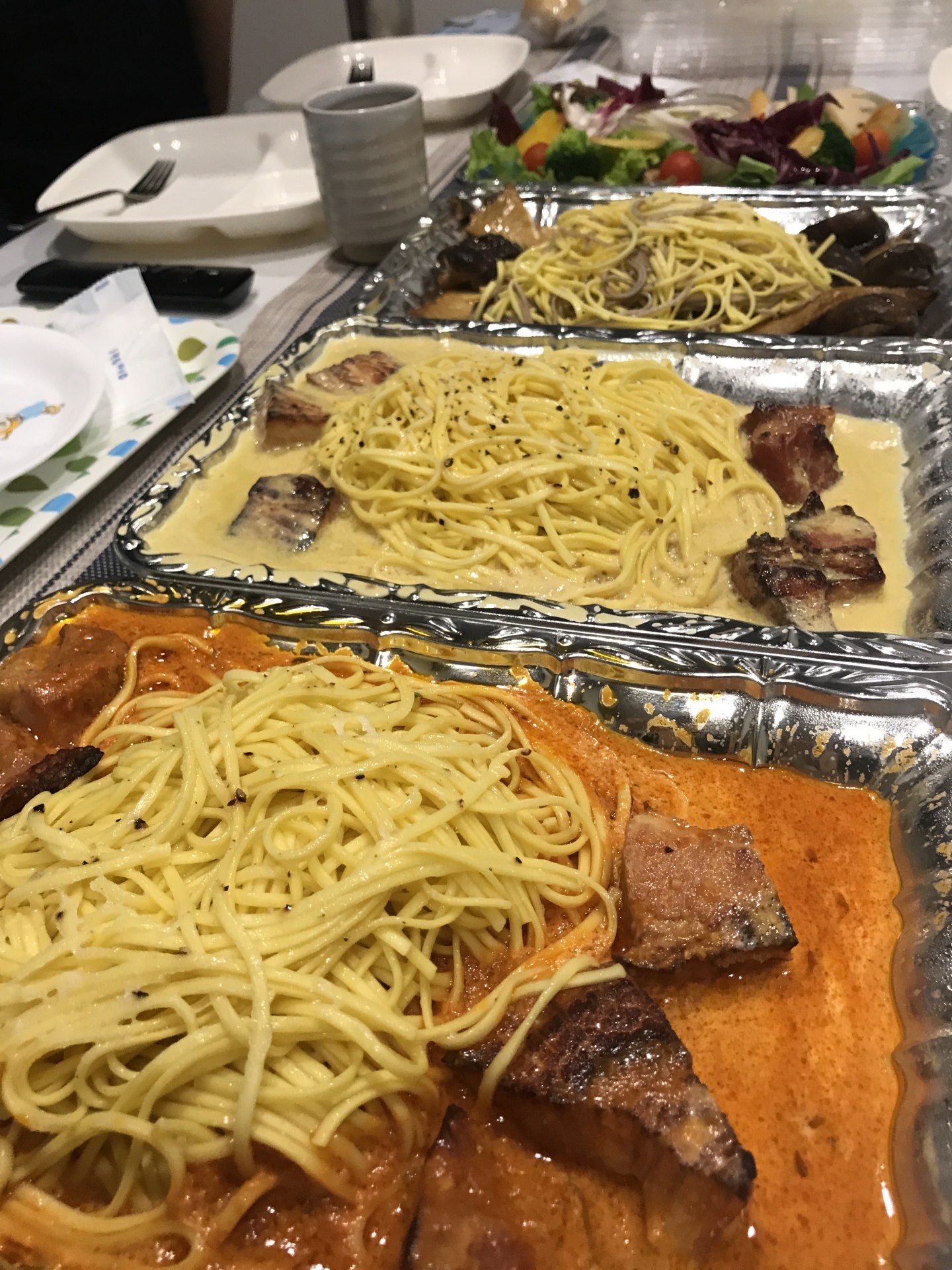 パスタをみなファミリーサイズにしてくれ、いやー、もうボリューム満点!もちろん味も本格イタリアンの折り紙付き。