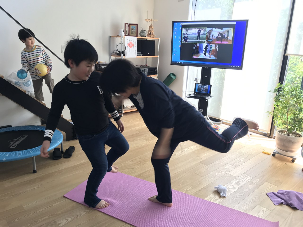午後は自宅に戻り、ウェルスポのオンライントレーニング親子教室に家族とともに参加した。