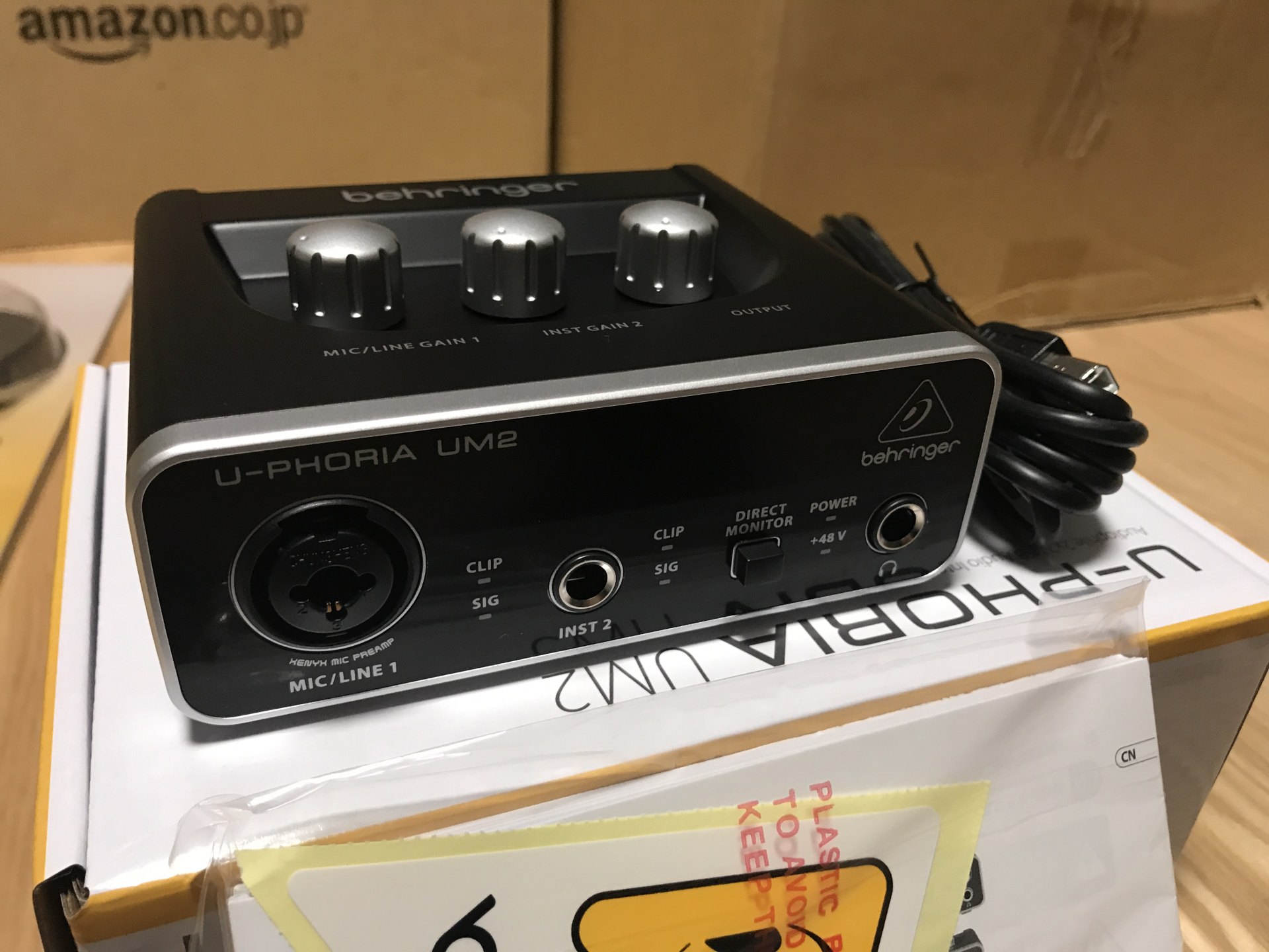 ネットでベリンガー製のUM2という廉価版の製品を見つけ、思わずポチってしまった。5,000円前後で購入できるおそらく最安水準のオーディオインターフェースであろう。