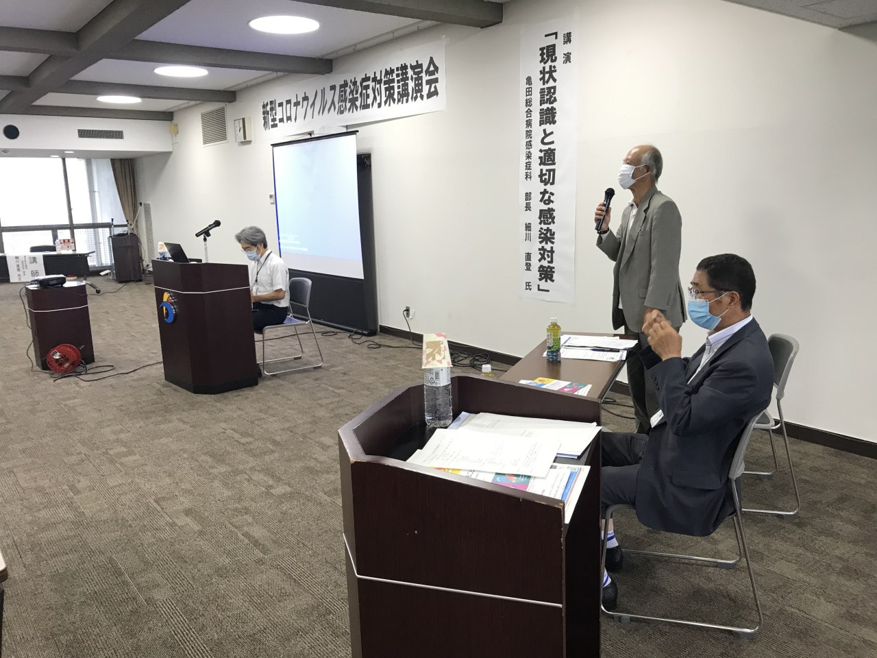 やはり関心のあるテーマなのか、飲食業や宿泊業を営む方を中心に、ソーシャルディスタンスを保ちつつも、設定された席はほぼいっぱいとなり、みな真剣に講師を務めた亀田総合病院感染症科部長である細川先生のお話しを聴き入っていた。