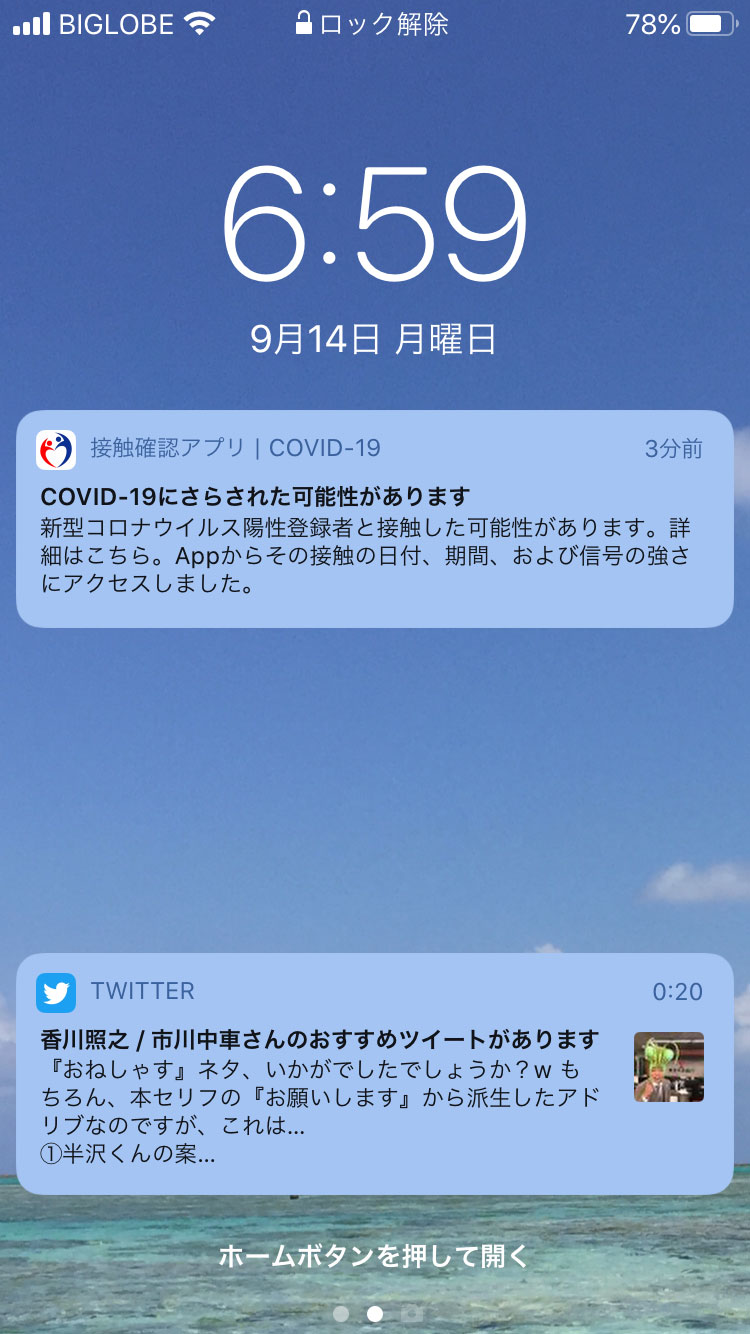 9月12日(土) 午前2時過ぎ|COCOAから通知!