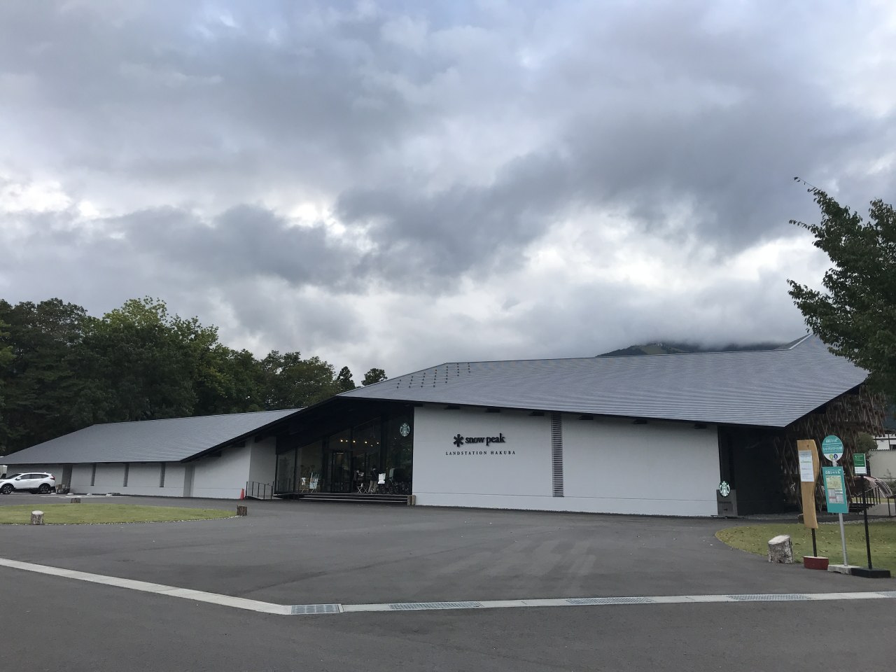 スターバックスやミシュラン監修のレストランなどが施設に入り、白馬連山を臨むところのできる芝生の前庭にはテントが張られ、その中で過ごすこともできる。