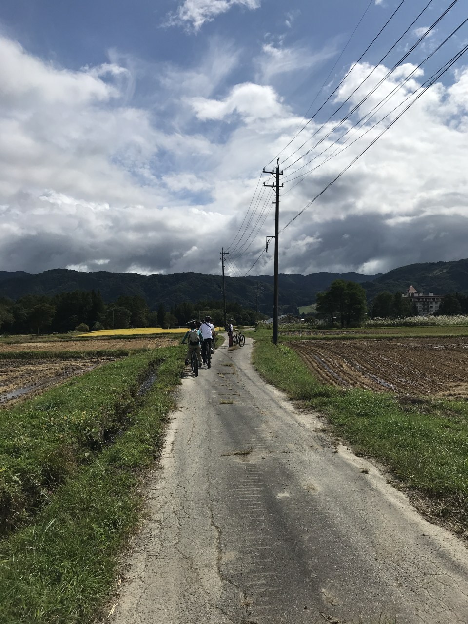 ゴールは大出集落。そこからは車で人も自転車もスタートへ運んでくれる。