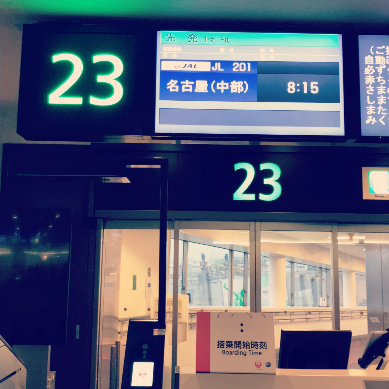 早朝羽田空港に向かい、羽田から中部国際空港にJAL便で飛ぶ。