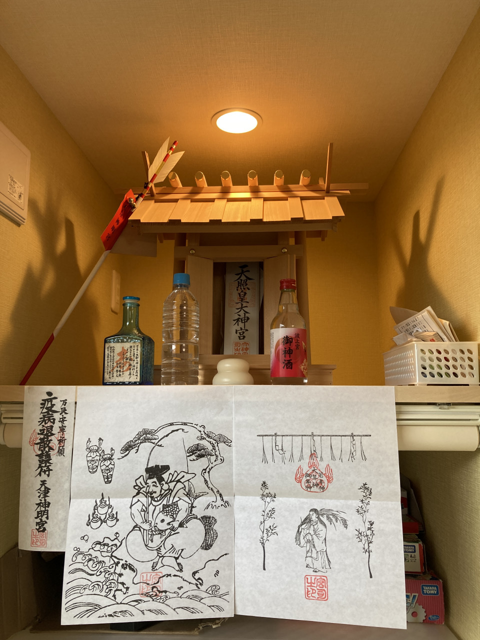 [写真:自宅の神棚も掃除して神札を新しくした。