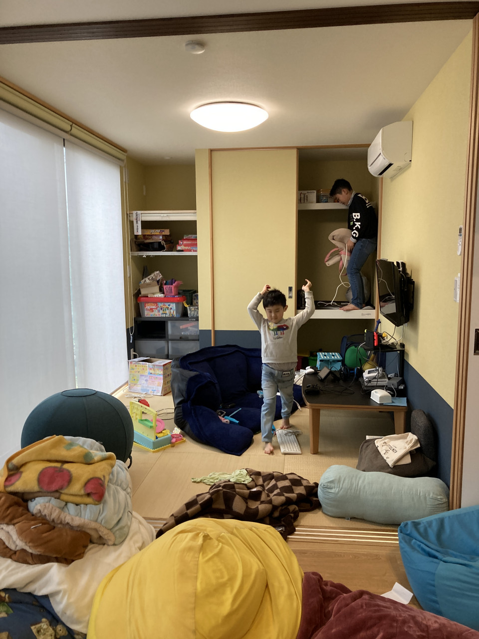 子どもたちは1Fの和室、ゲーム・おもちゃ部屋の掃除。