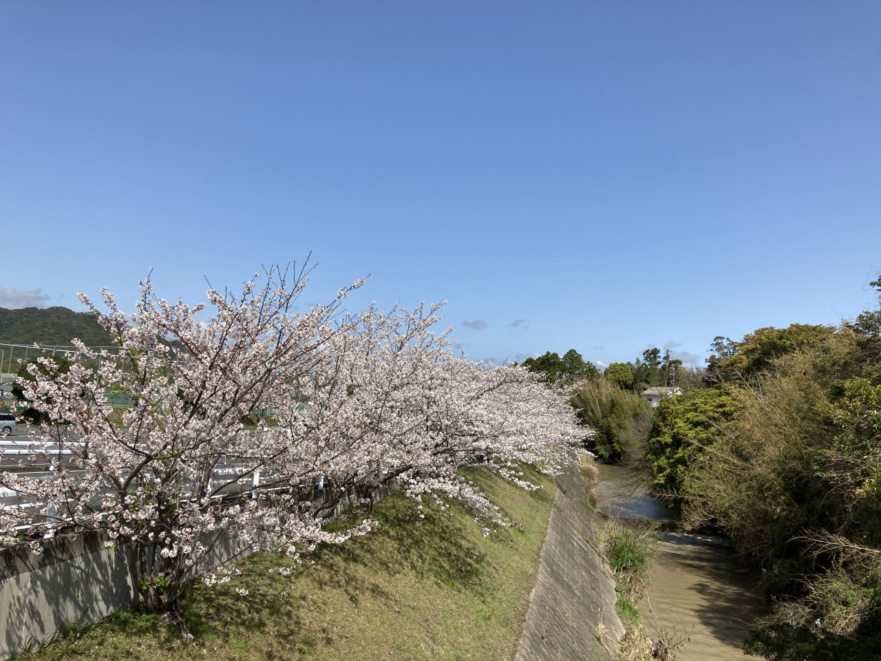 続いて、鴨川令徳ビーチコートへ行くと、ピッチサイドに1本立つ桜が満開を迎えていた。