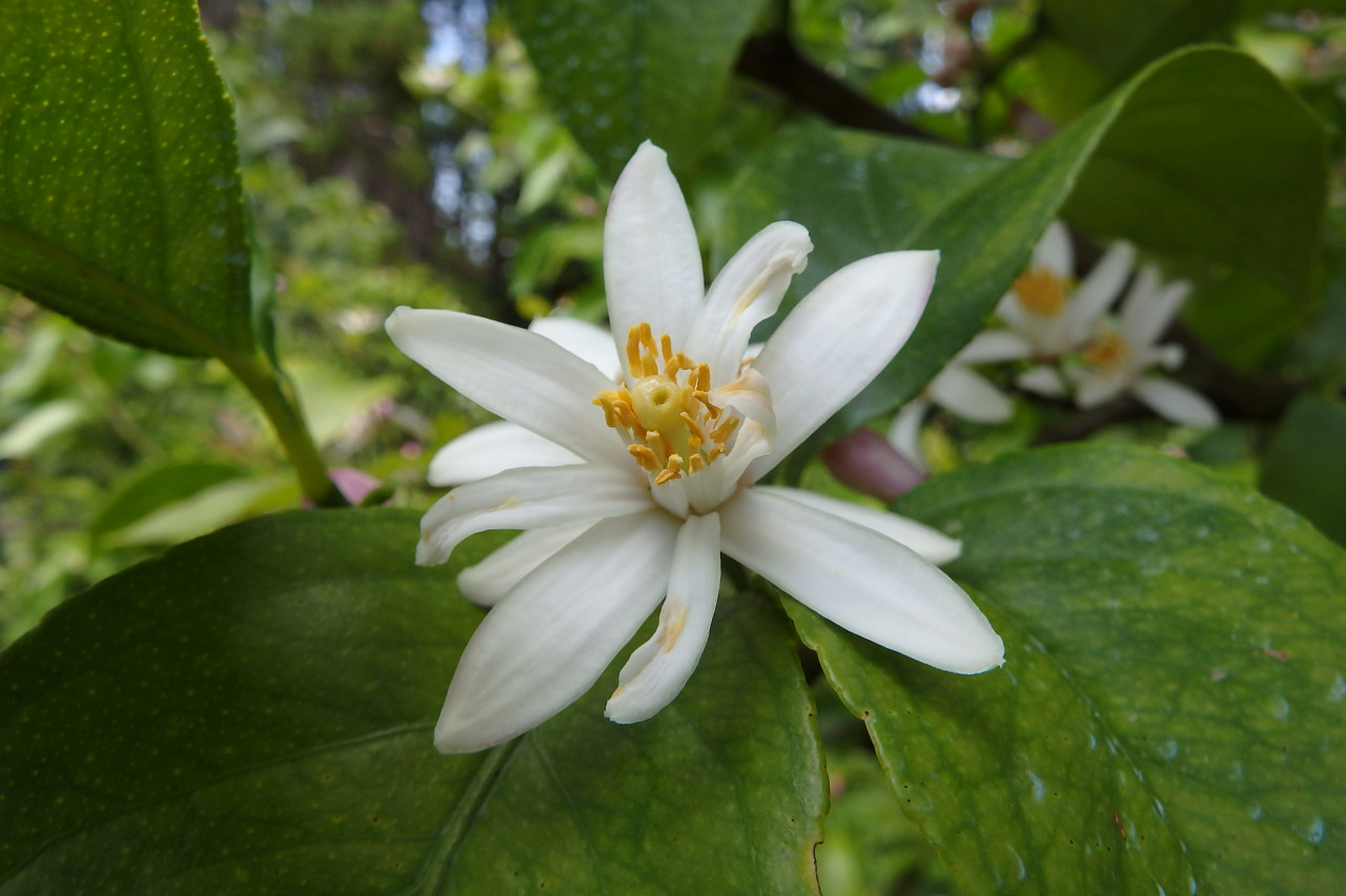 ちょうど満開になったレモンの花を見させていただく。