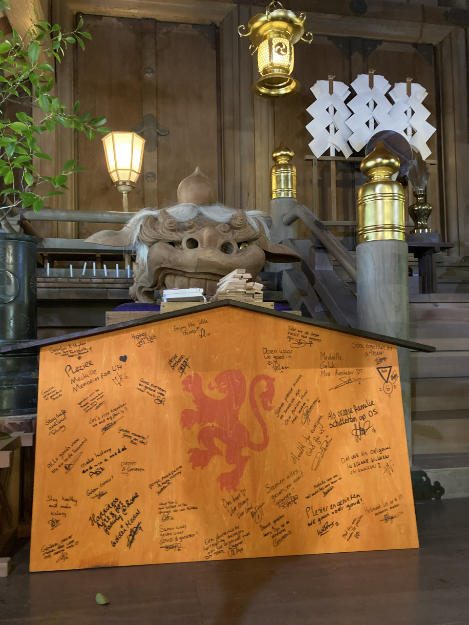 先日、オランダの選手たちが願いを込めた絵馬は神前に。