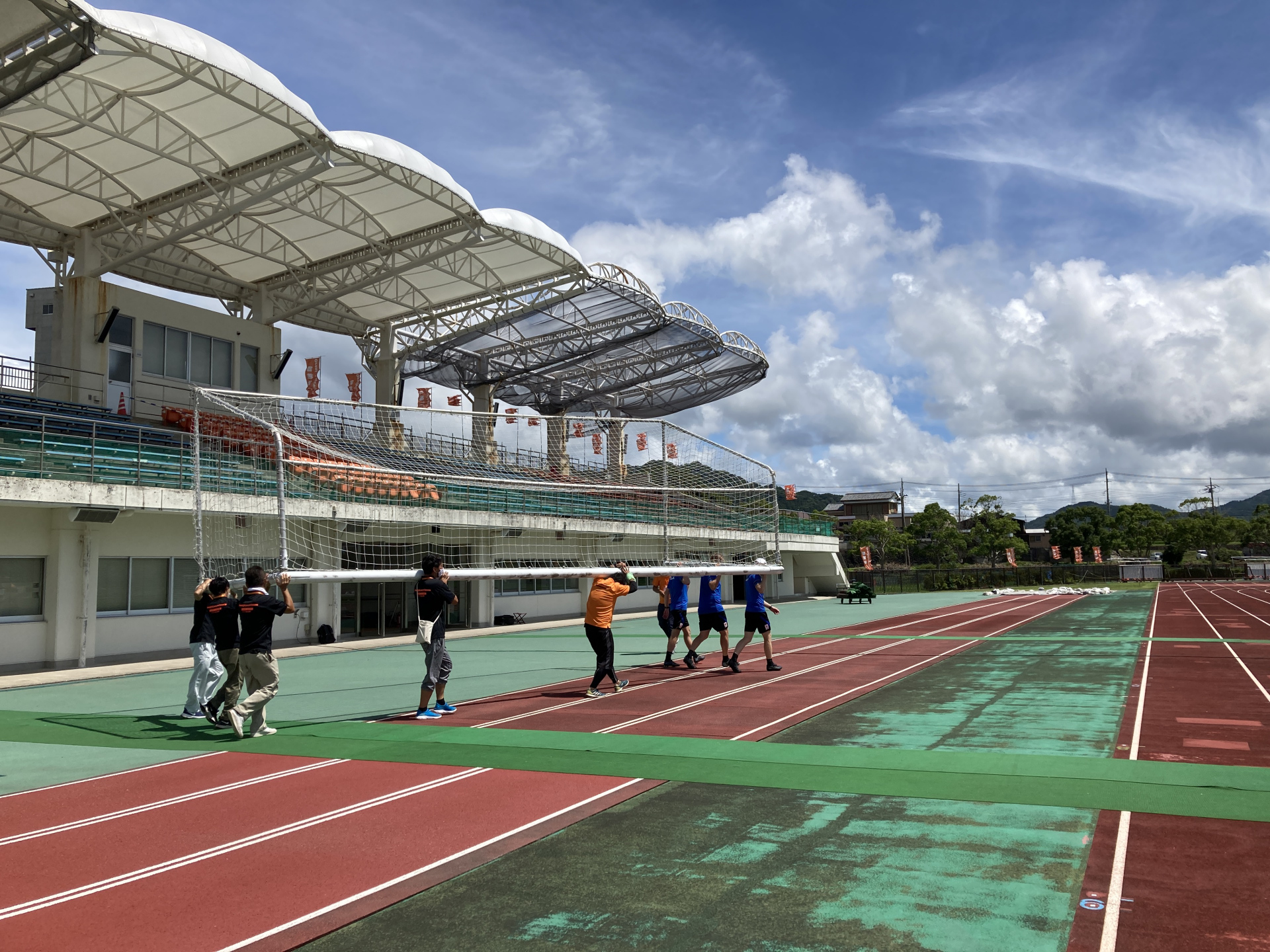[写真:みんなでゴールを運ぶ