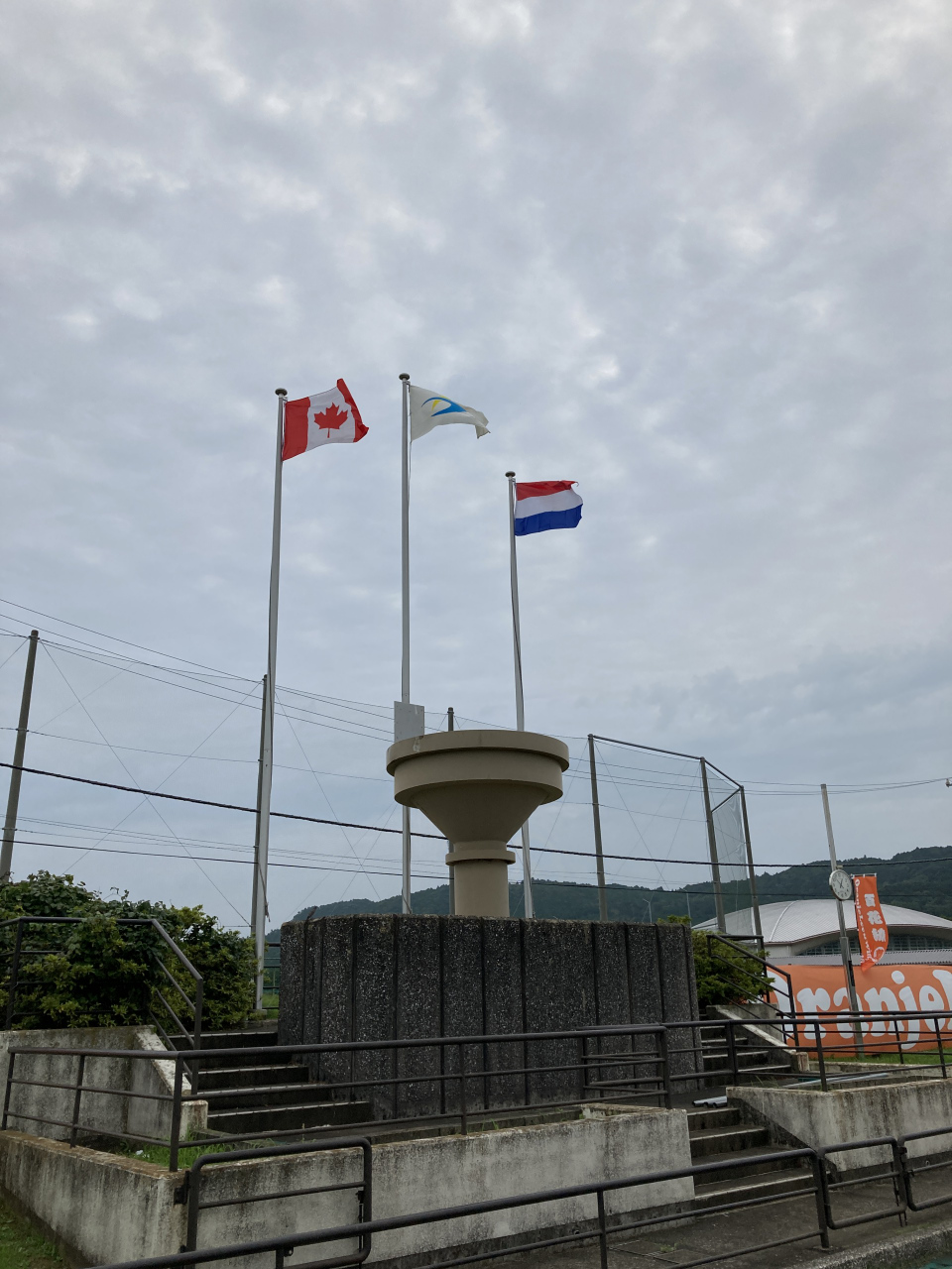 [写真:オランダ国旗、カナダ国旗、そして開催地の鴨川市旗