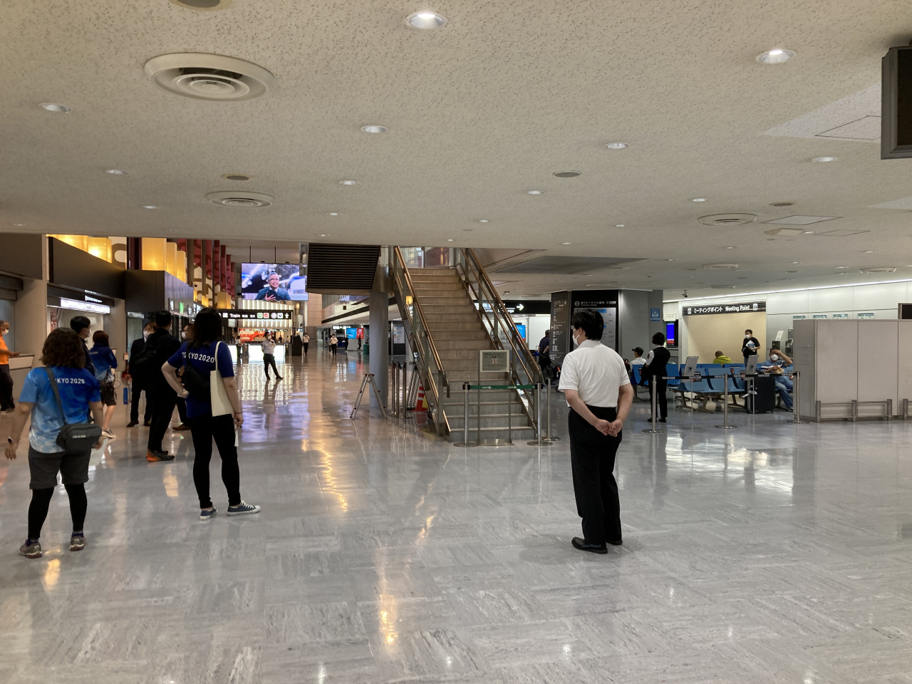 到着ロビーに選手団が現れたものの、そのまま、別の部屋に連れていかれ(しかも、途中でスーツケースなどの荷物とは離され…)、いろいろな手続を行うことに。