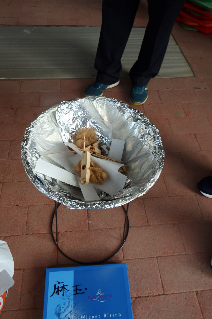 朝方まさかの大雨が降ったのだが、スコールのごとく過ぎ去り、蒸し暑く晴れた中での採火となった。