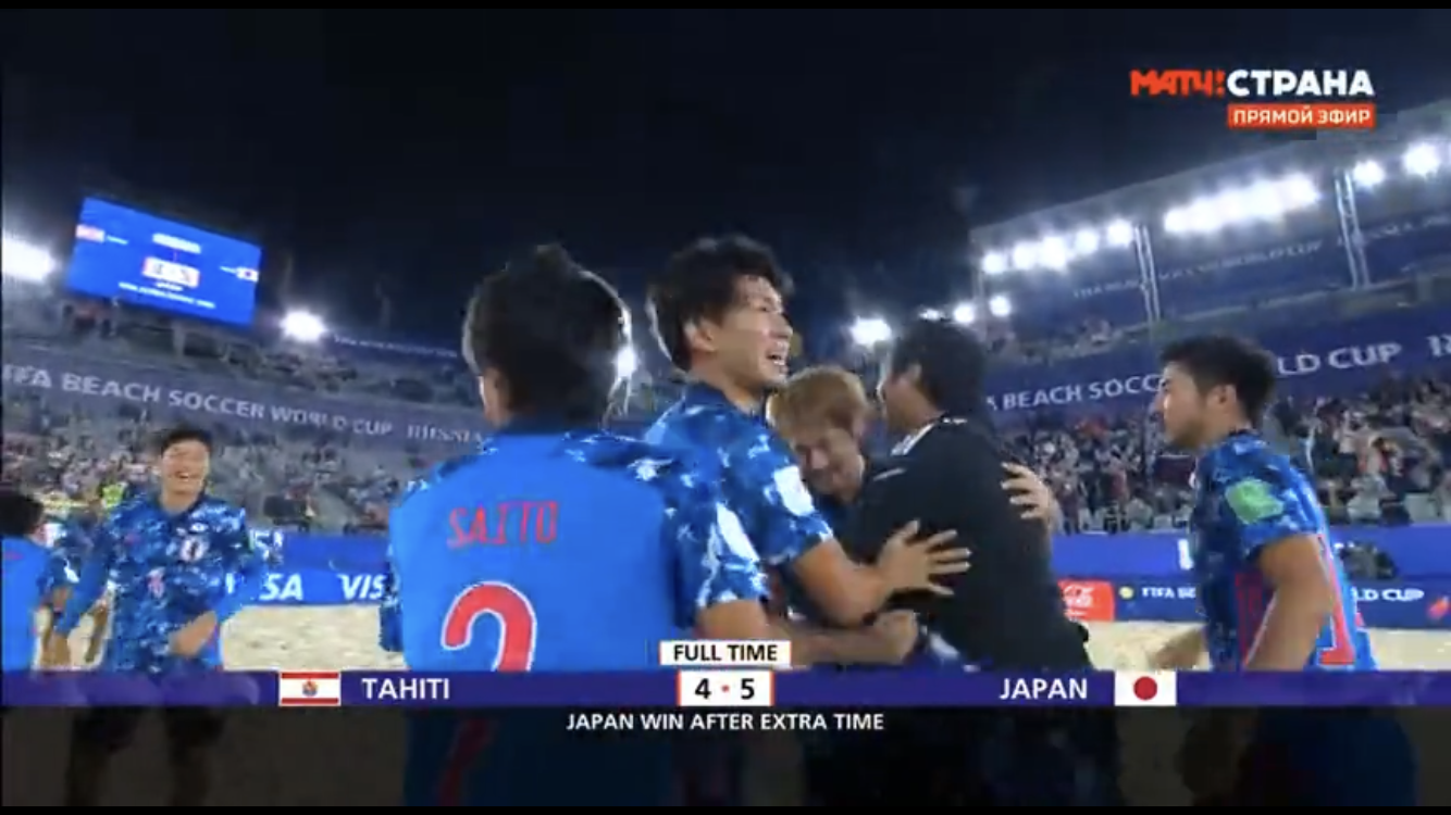 日本は強豪タヒチを激闘の末、5−4で破り、準決勝進出を決めた。