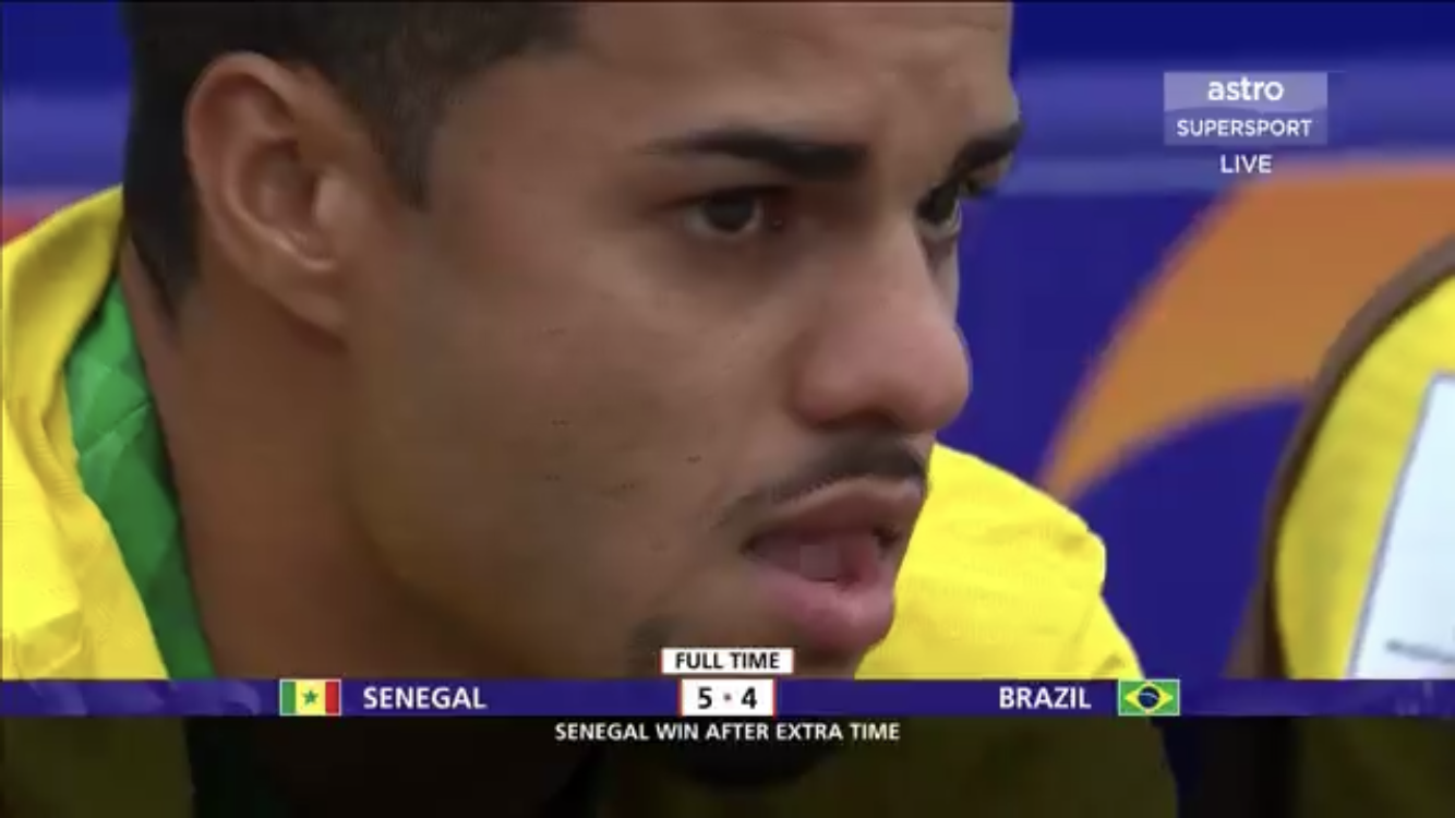 [写真:準々決勝で、セネガルにまさかの敗戦を喫し、呆然とするブラジル代表]