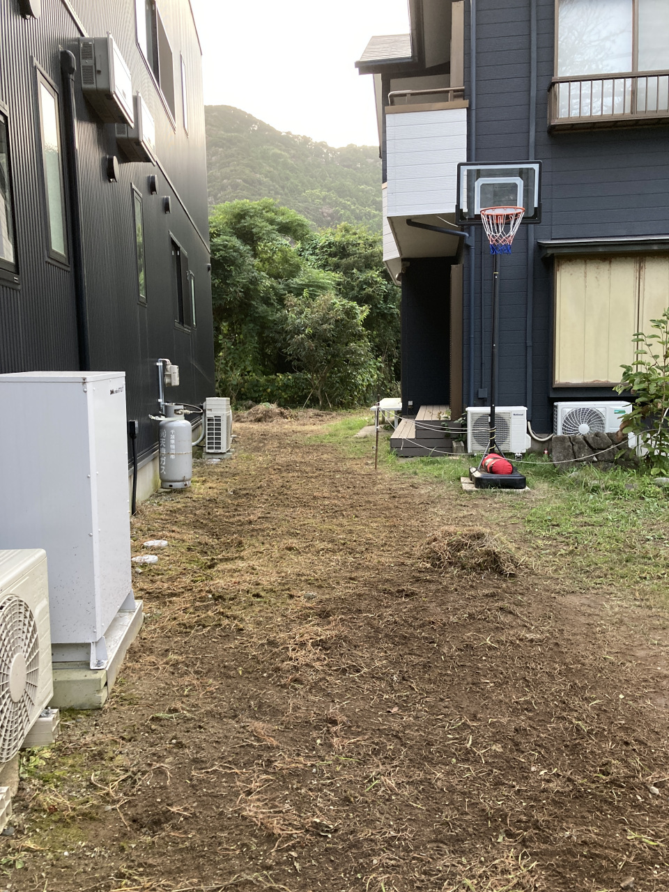 除草剤がきいてきたので、まずは自宅北側部分の草の除去、耕運機、レーキでの地ならしを行った。