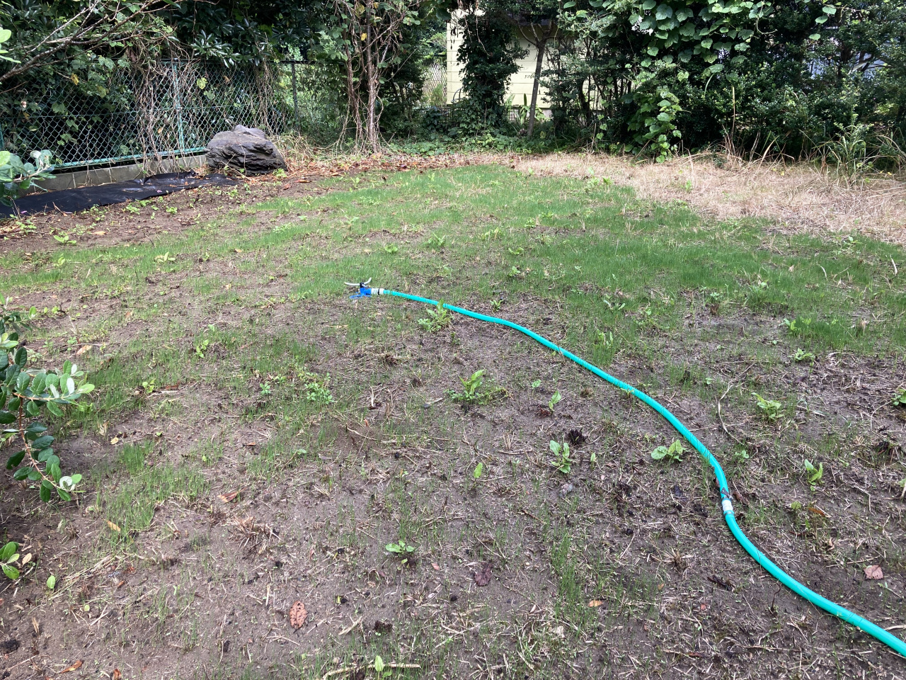 しばらくしたら、さらに種を追い蒔きして、目土を多少入れて、さらに芝生を増殖させたいと目論んでいる。