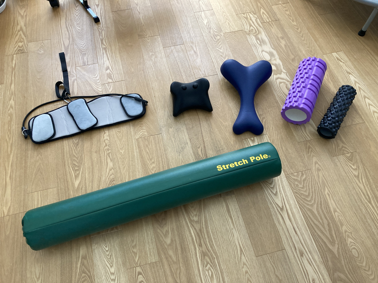ストレッチポールからはじまり、ネックハンモック、フォームローラー、ネックピロー(首枕)などなど。