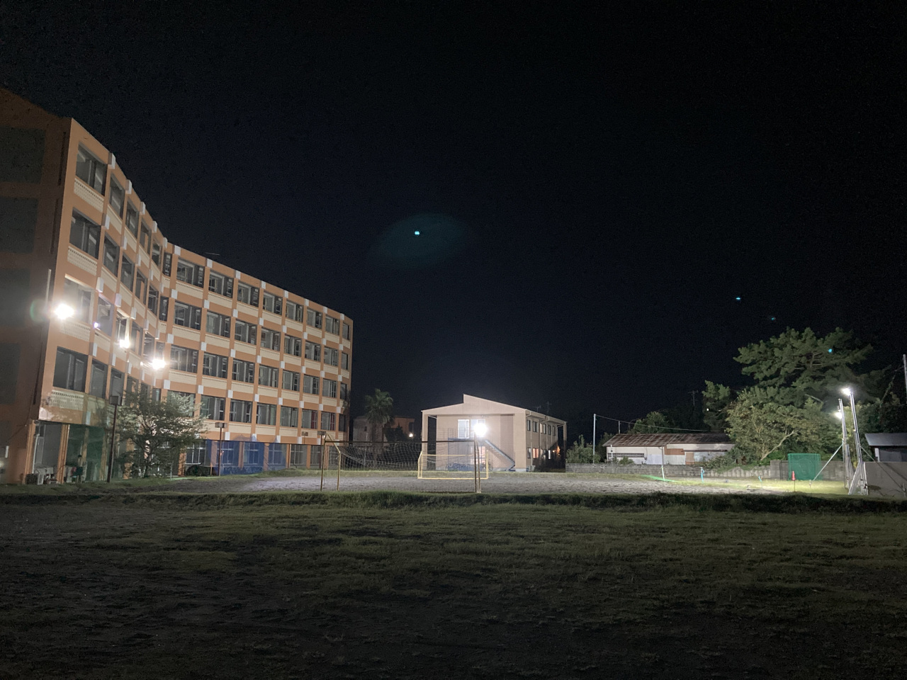 ちょうど夜練習があったので、さっそく点灯してみると、、、