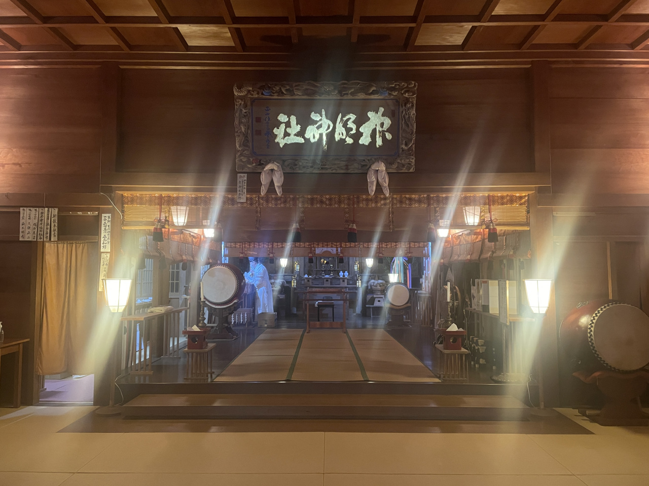 おはらいの後、浄闇の中、火切石で起こした斎火を参列者とともに神前に供え、柔らかい光に殿内が照らされるという、実に幻想的な神事である。