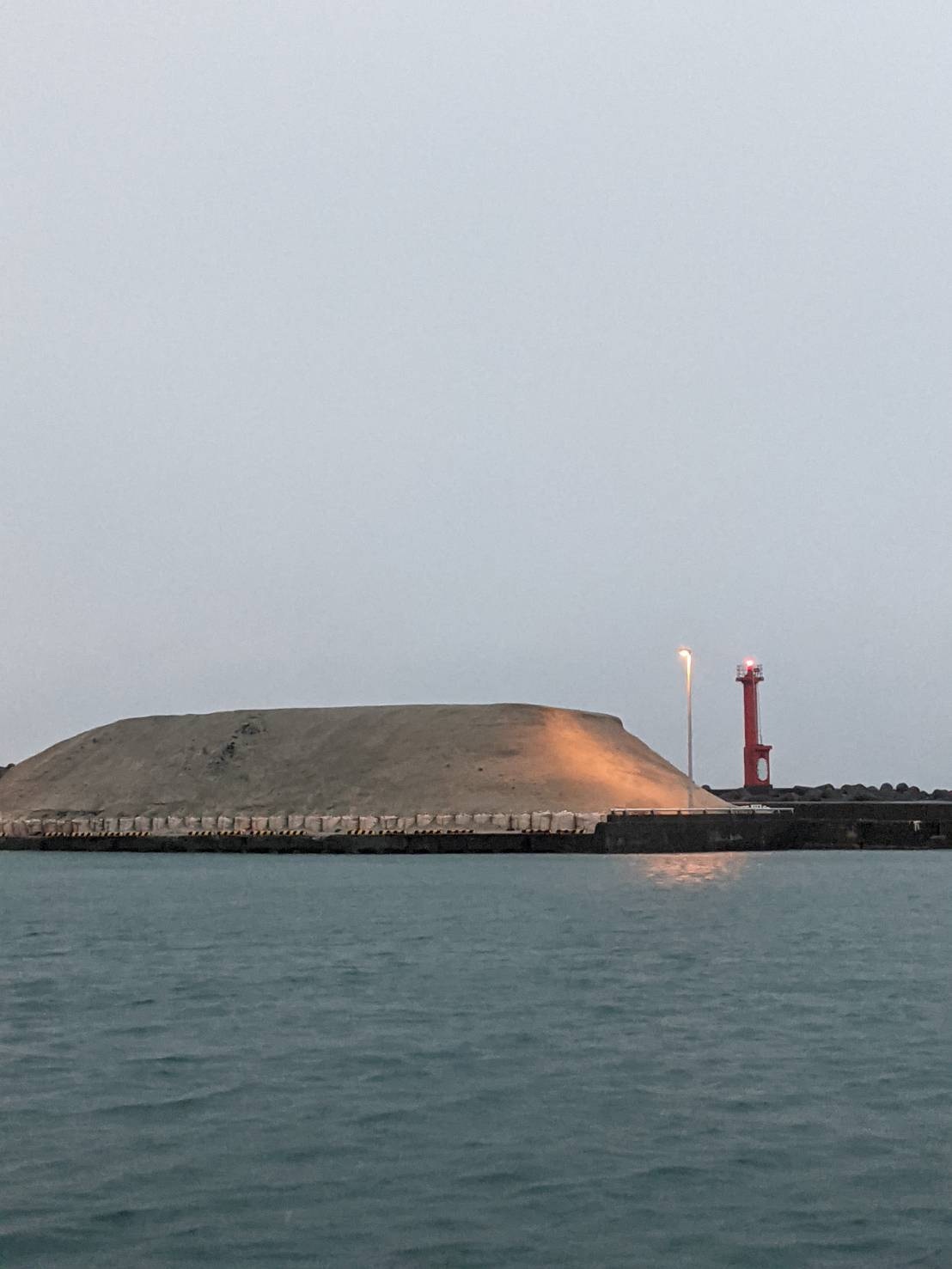 [写真:天津漁港の浚渫で揚げられた大量の砂。ビーチコート4面くらいは軽くありそう。
