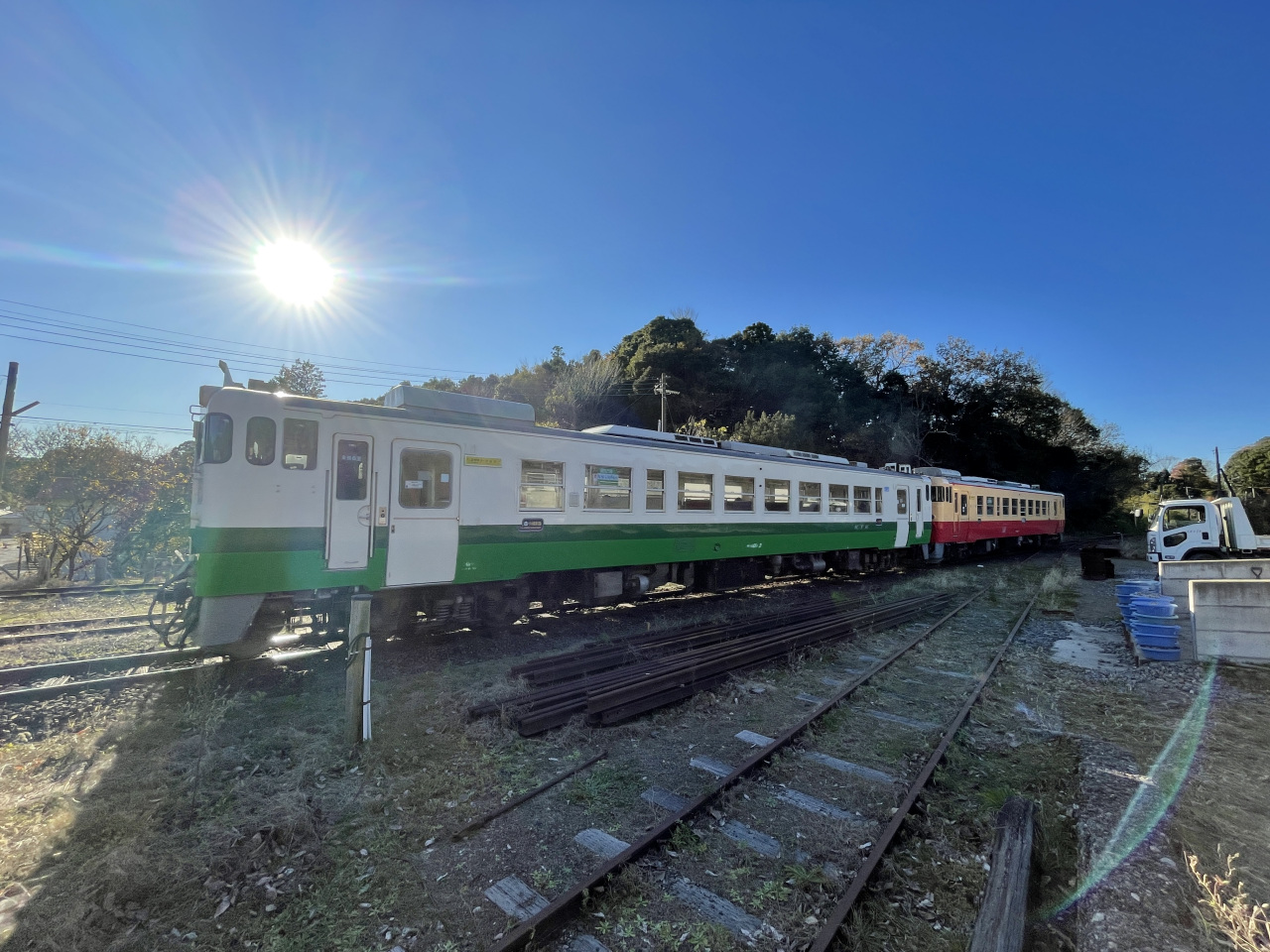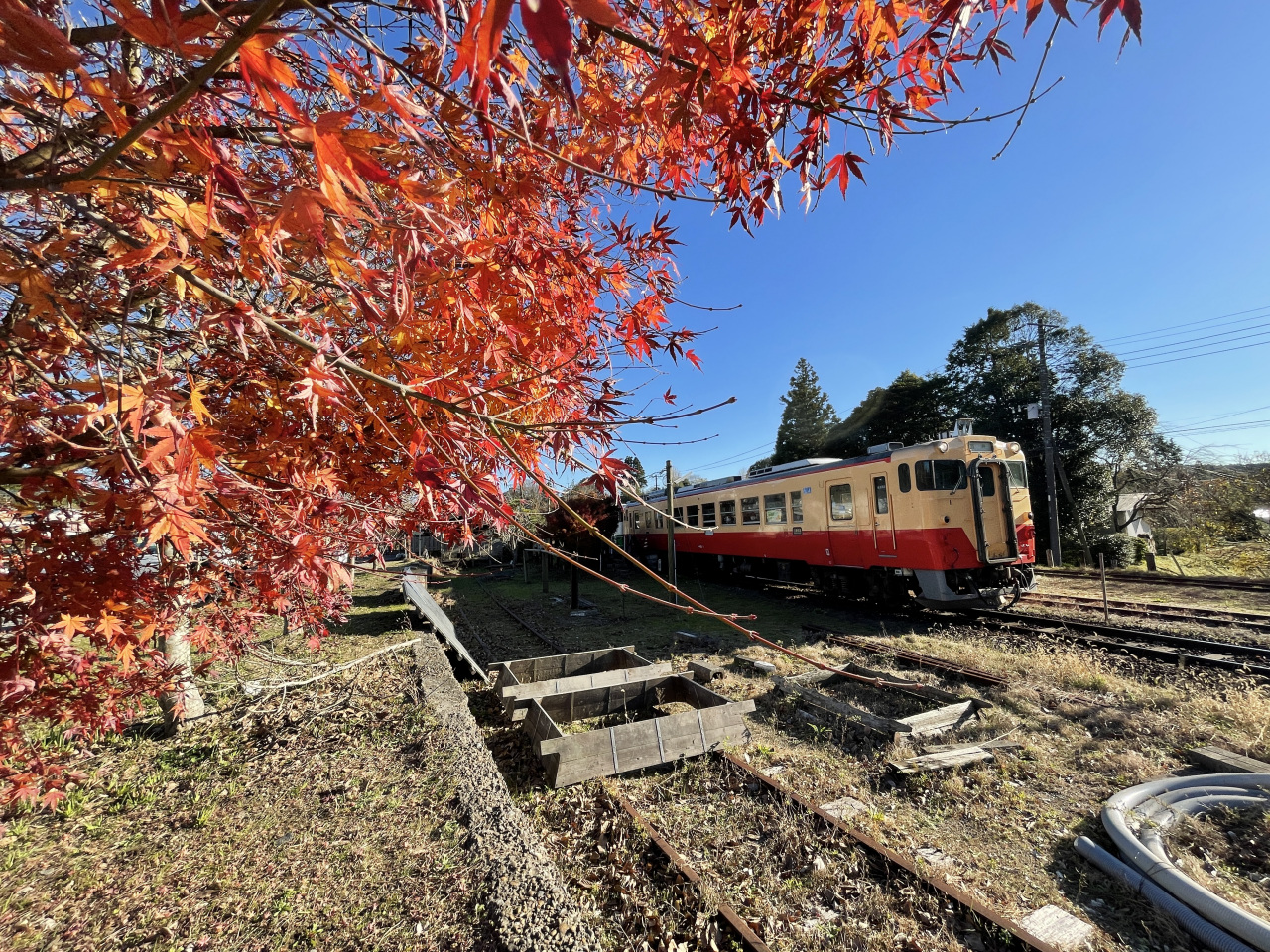 [写真:養老渓谷駅を出発する列車