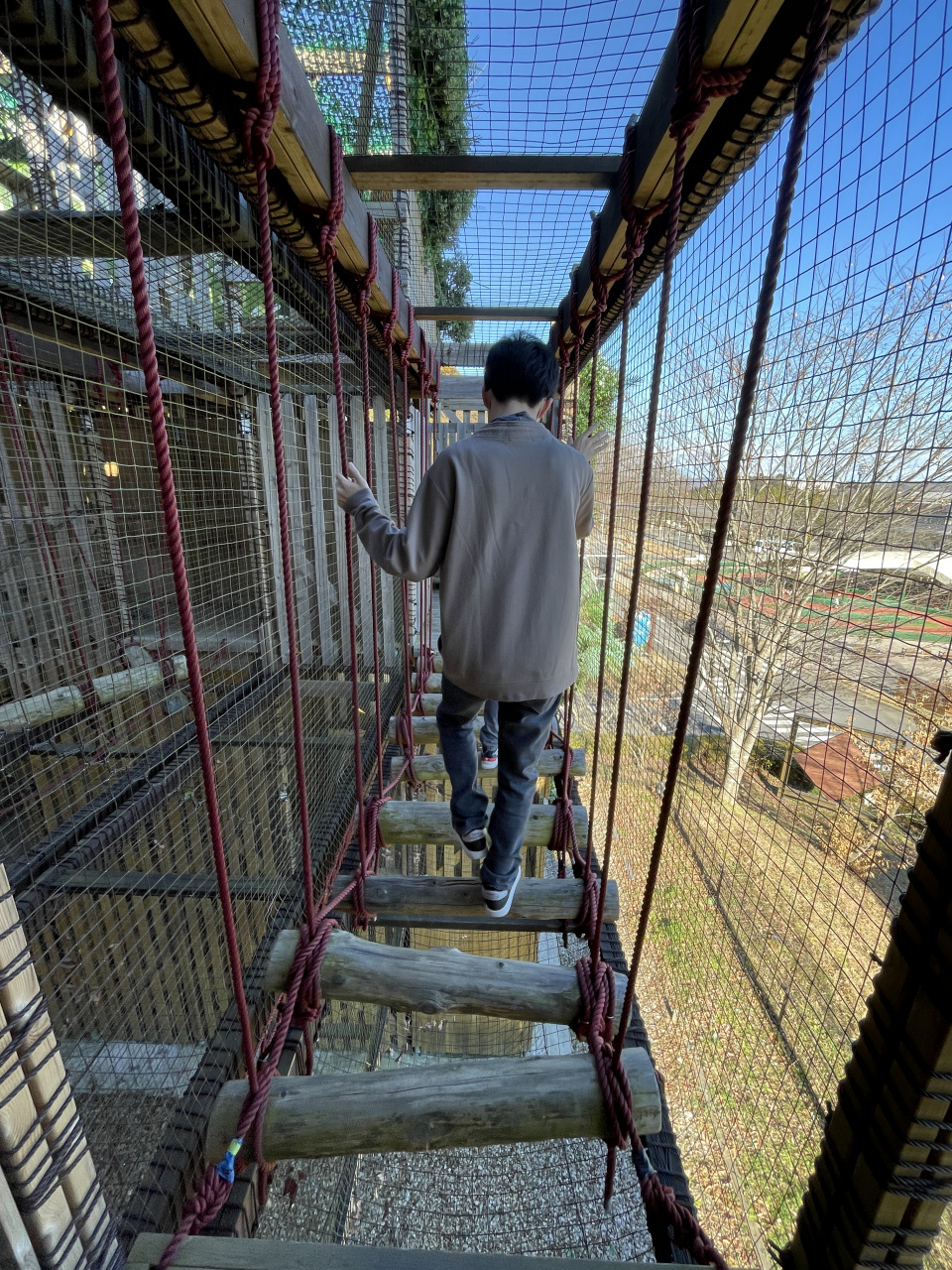 園内にはたくさんのアスレチックやアトラクションがあり、イブたんをはじめ、子どもたちも大はしゃぎ。気温が低い日であったが、汗をにじませながら、遊んでいた。