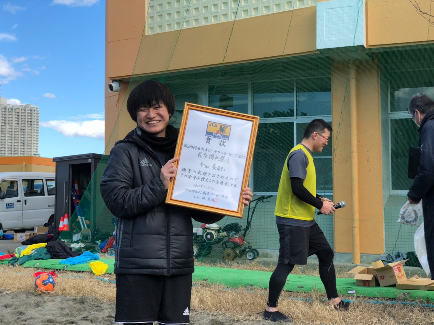 [写真:2021関東女子リーグ得点王のヒラ(ようやく表彰状を渡せた)