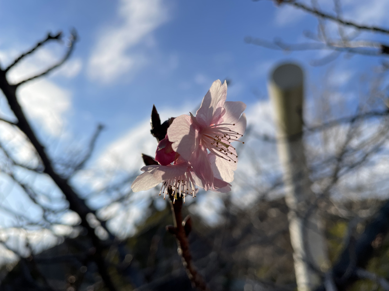 気温が上がったこともあり、札所の前にある河津桜が早くも開花。