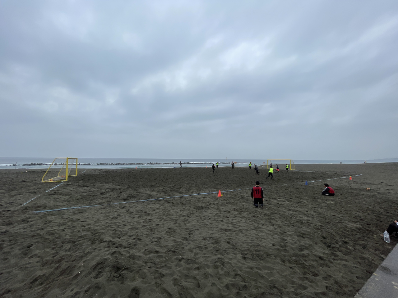 冬季の、特に雨の中のビーチサッカーはなかなか過酷。