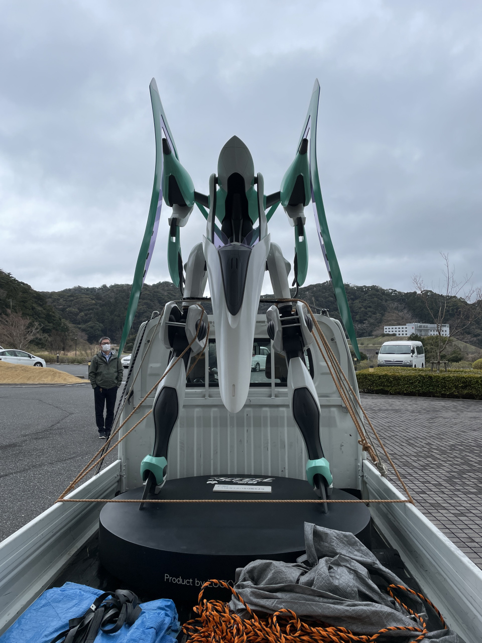2015年4月に城西国際大学安房キャンパスに移設されてから、ずっと展示されてきた、TVアニメ『輪廻のラグランジェ』のウォクス・アウラのヒューマンスケールモデルであるが、この3月で安房キャンパスが閉所することとなり、今日、移設作業を行った。