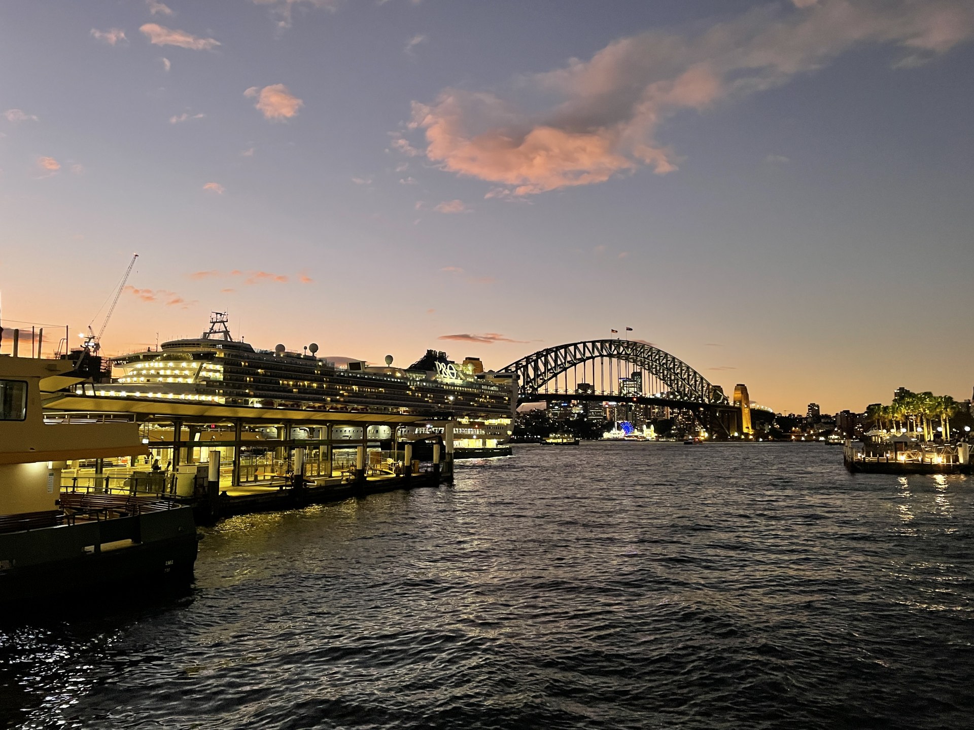 ちょうど夕暮れ時の絶妙な空をバックにシドニーを象徴する風景を楽しんだ。