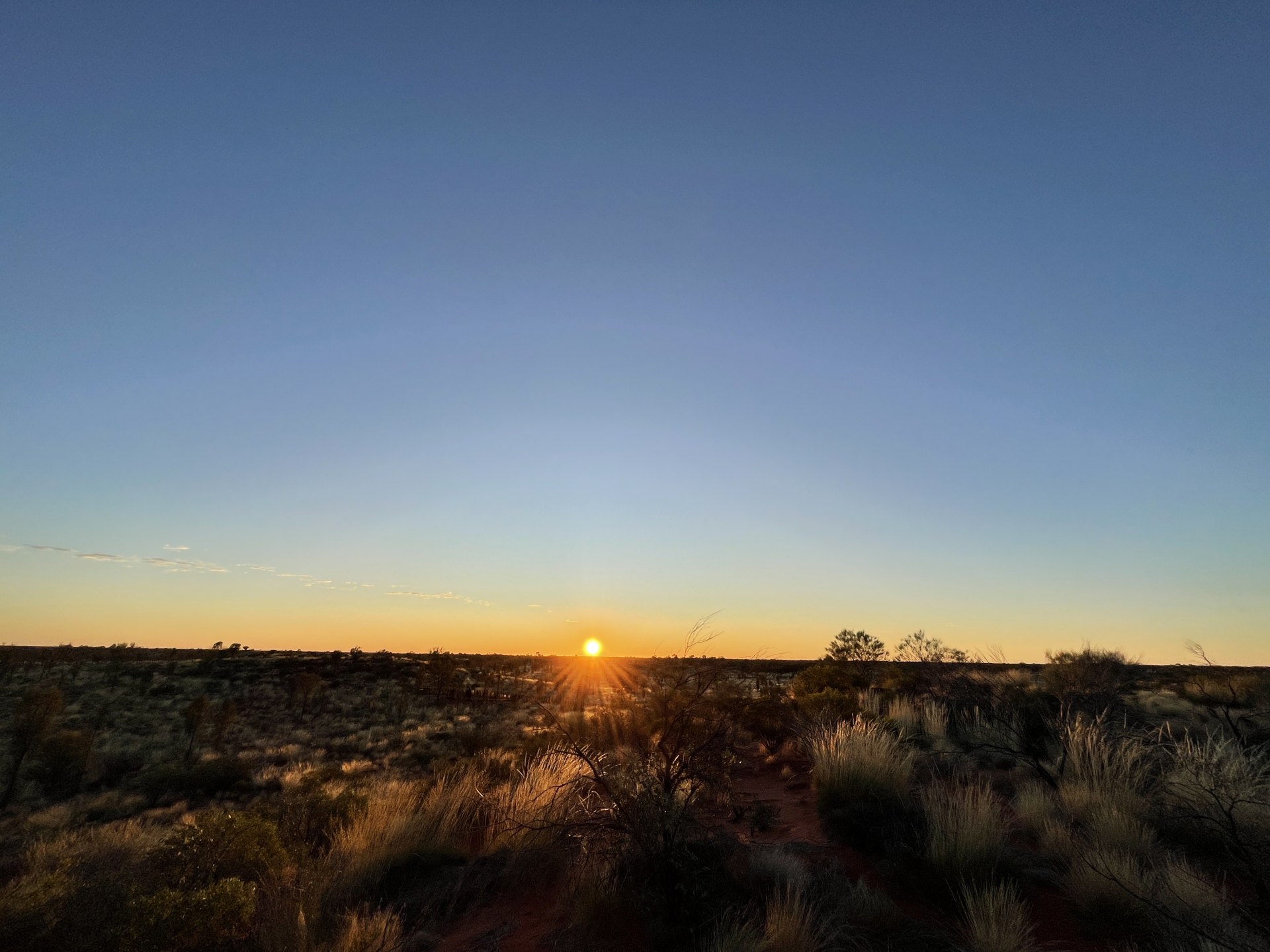 東の空が徐々に明るくなり、暗闇からウルルが現れ始める。
