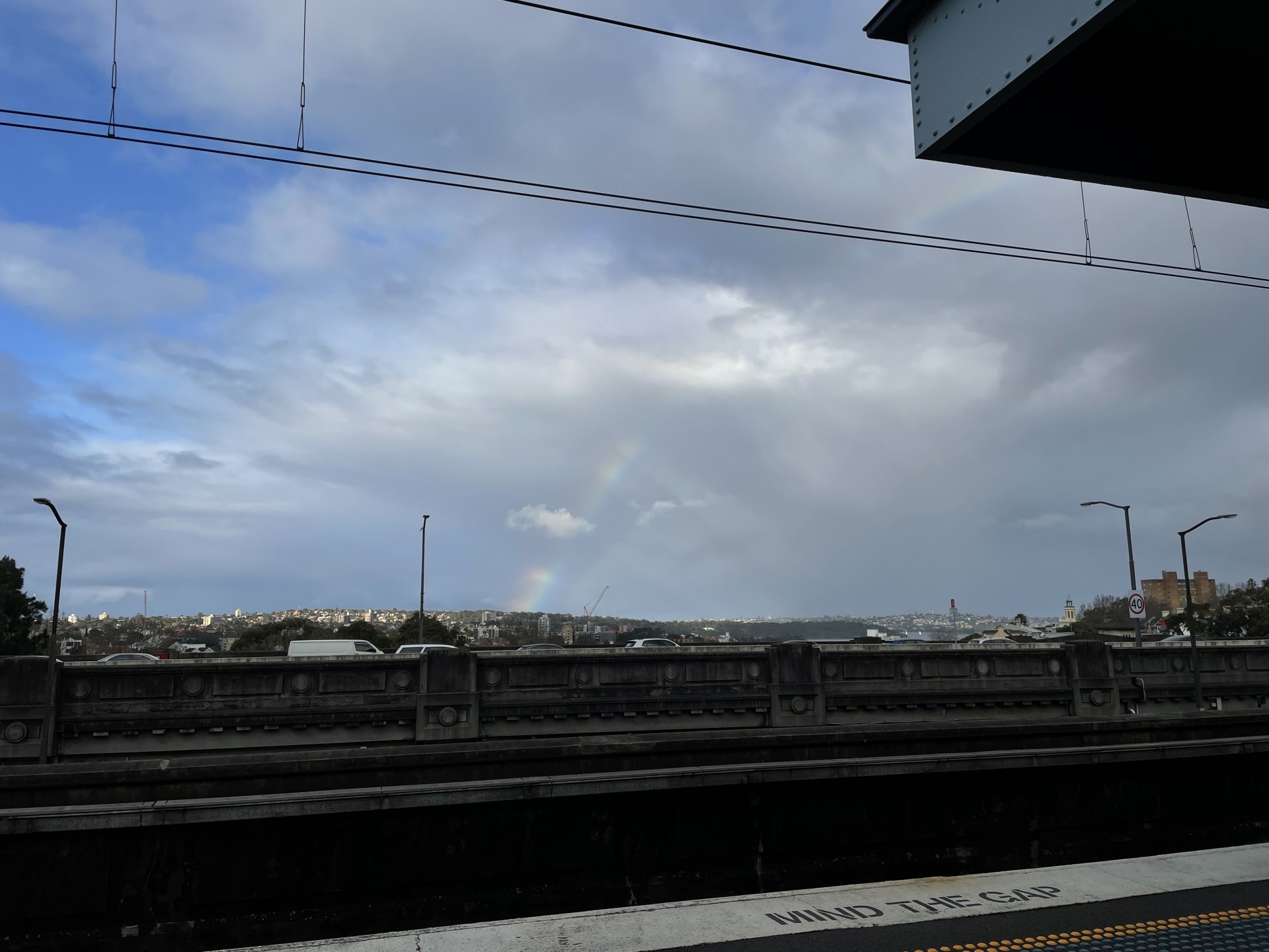 今日は雨が時折降ったり、はたまた晴れたりと、天気の移り変わりが激しかったのだが、帰りには虹がかかり、なんとなくこれからの良い旅路を予感させた。(もう遅延や欠航は勘弁!!)