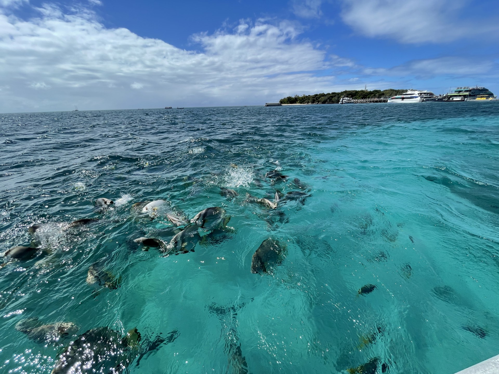 グリーン島手前で船長のサービスで、遠くに潮を噴き、ジャンプするクジラを鑑賞した後、グリーン島に着岸。