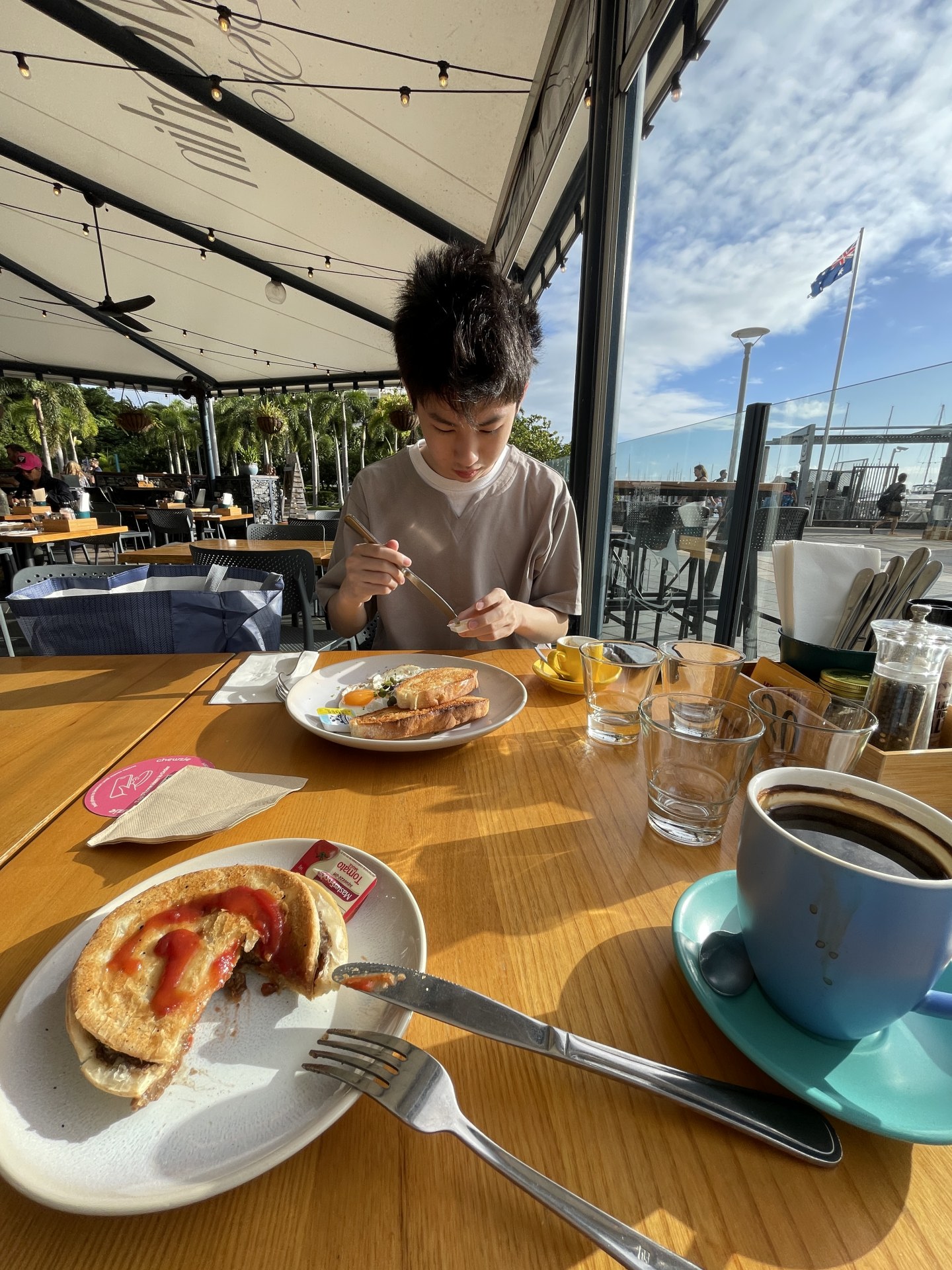 [写真:ハーバーで朝食