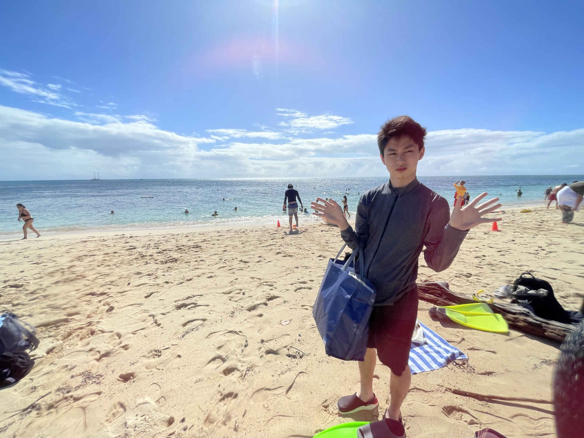ランチ休憩を終えると、再びビーチへ行き、シュノーケリングに挑戦しようとするが……。