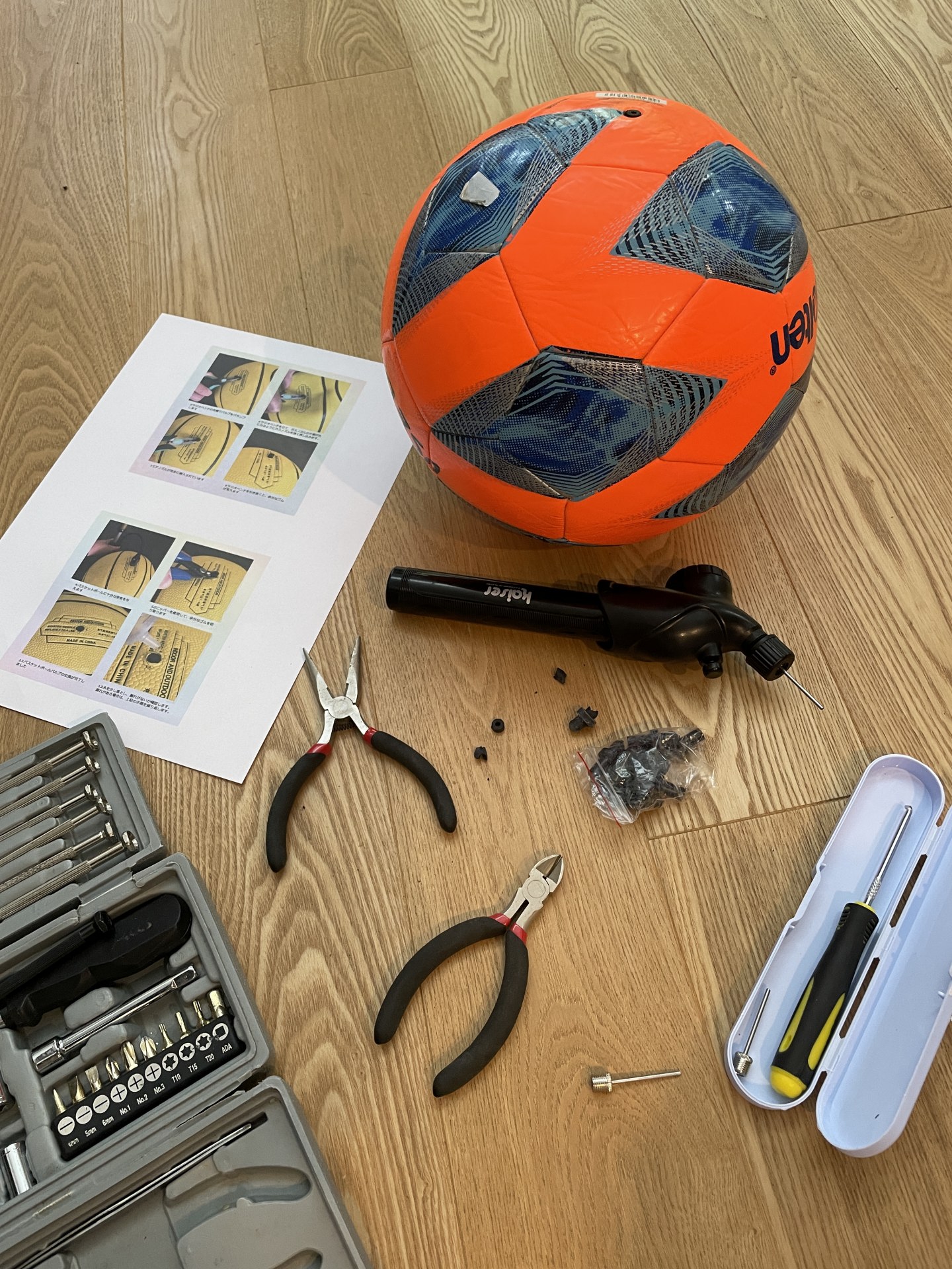 [写真:道具を大切に!ボールのバルブ交換に挑戦!たぶん、うまく行った。