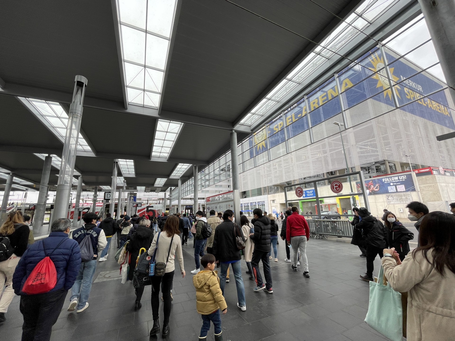 スタジアムへのアクセスはデュッセルドルフ中央駅から地下鉄で直通。