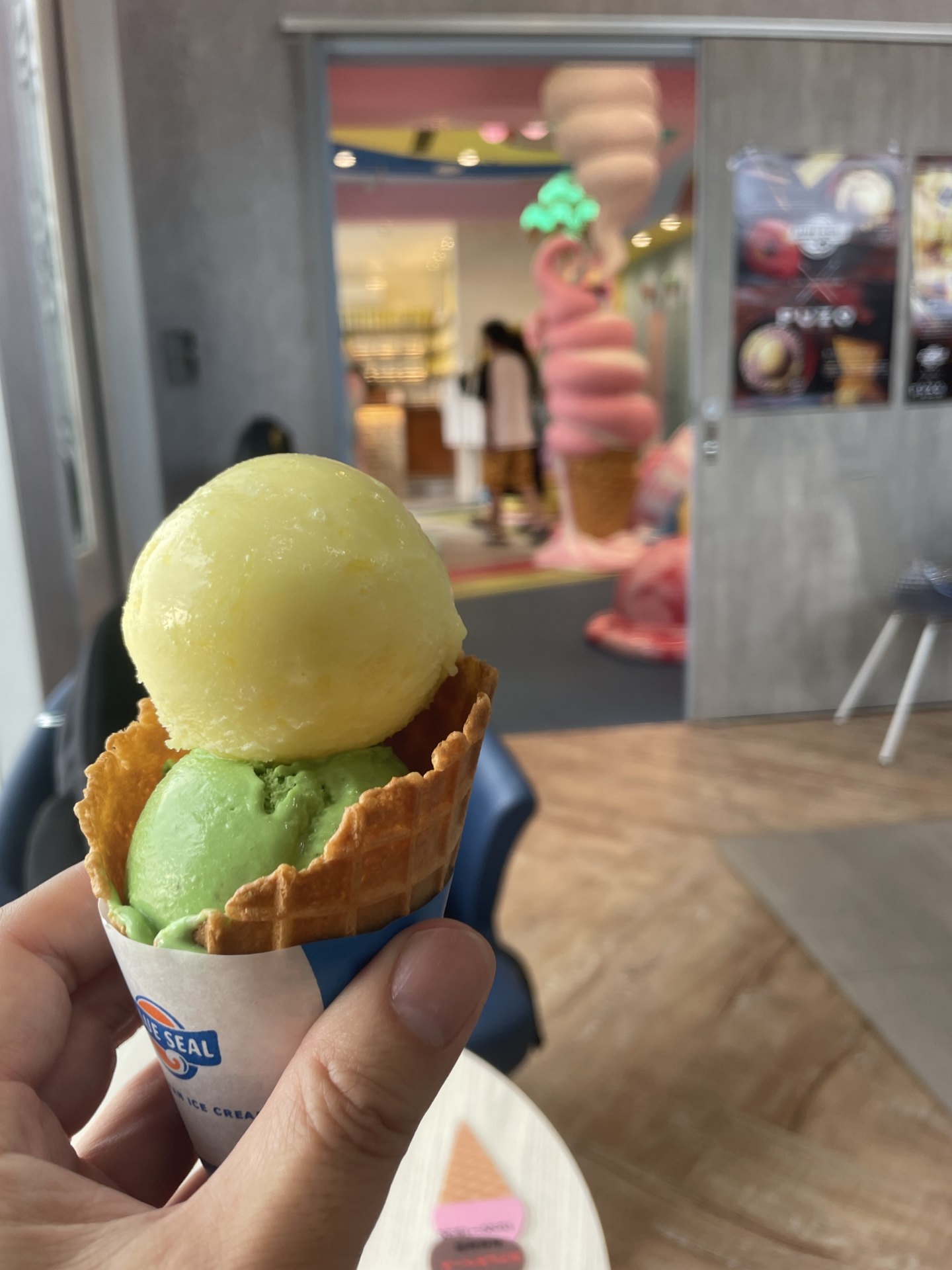 途中、お約束のブルーシールで糖分補給。笑