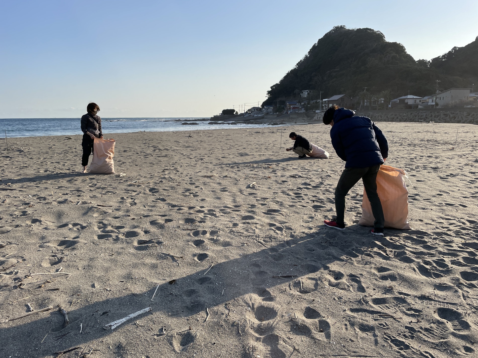 その後、小湊さとうみ学校からイベントで使用する備品を運び出した後、二タ間海岸へ行き、ビーチサッカーコートを設けるスペースのクリーニングを行う。