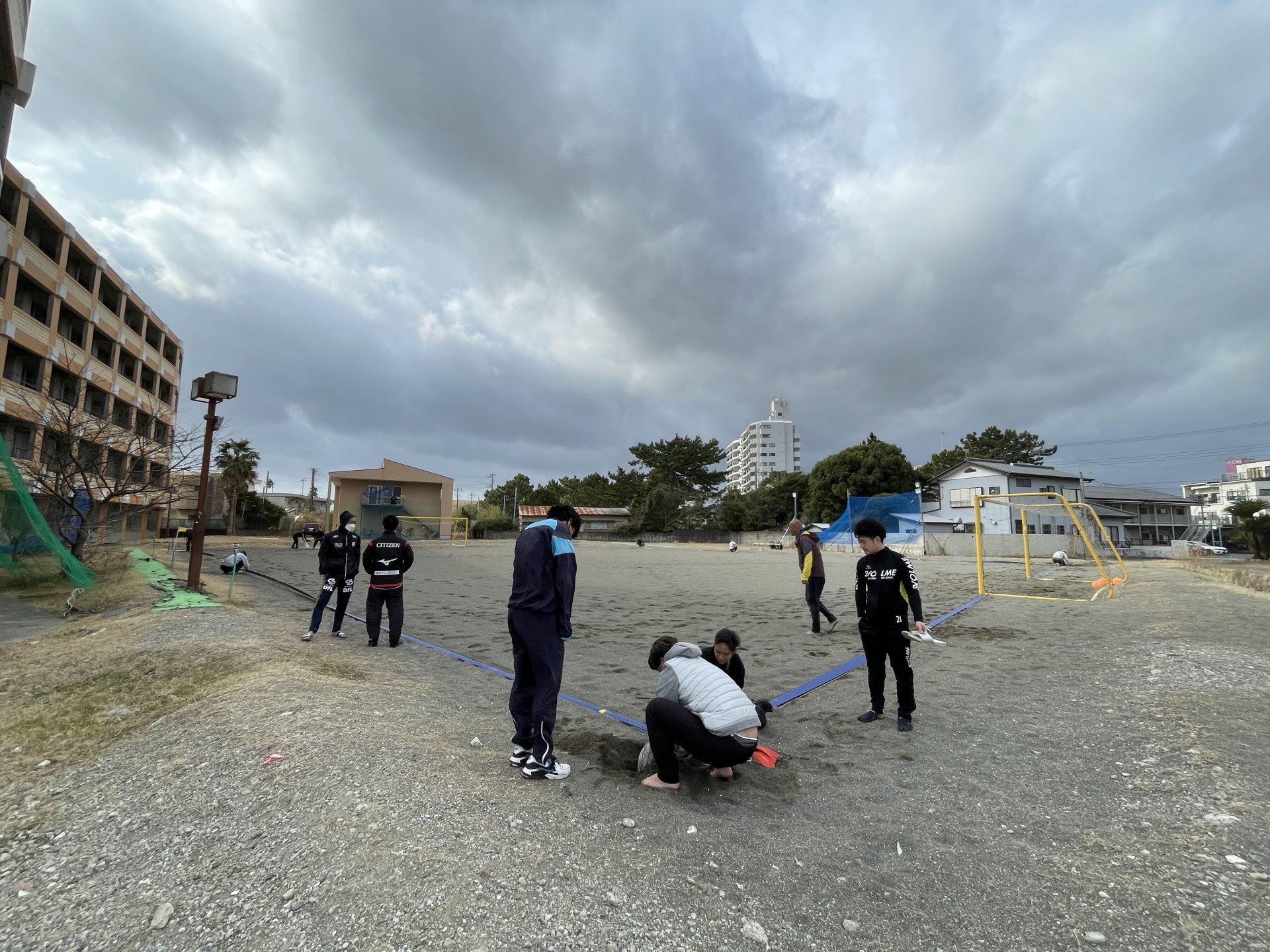 二タ間海岸で行われるはずだった「カモガワビーチパラダイス」は荒天のため3月4日に延期となり、同会場でエキシビジョンとしても開催されるはずだった「AWA BeachSoccer LEAGUE」の最終ラウンドは急遽鴨川令徳ビーチコートに会場を変更し、時間も早めて行われた。