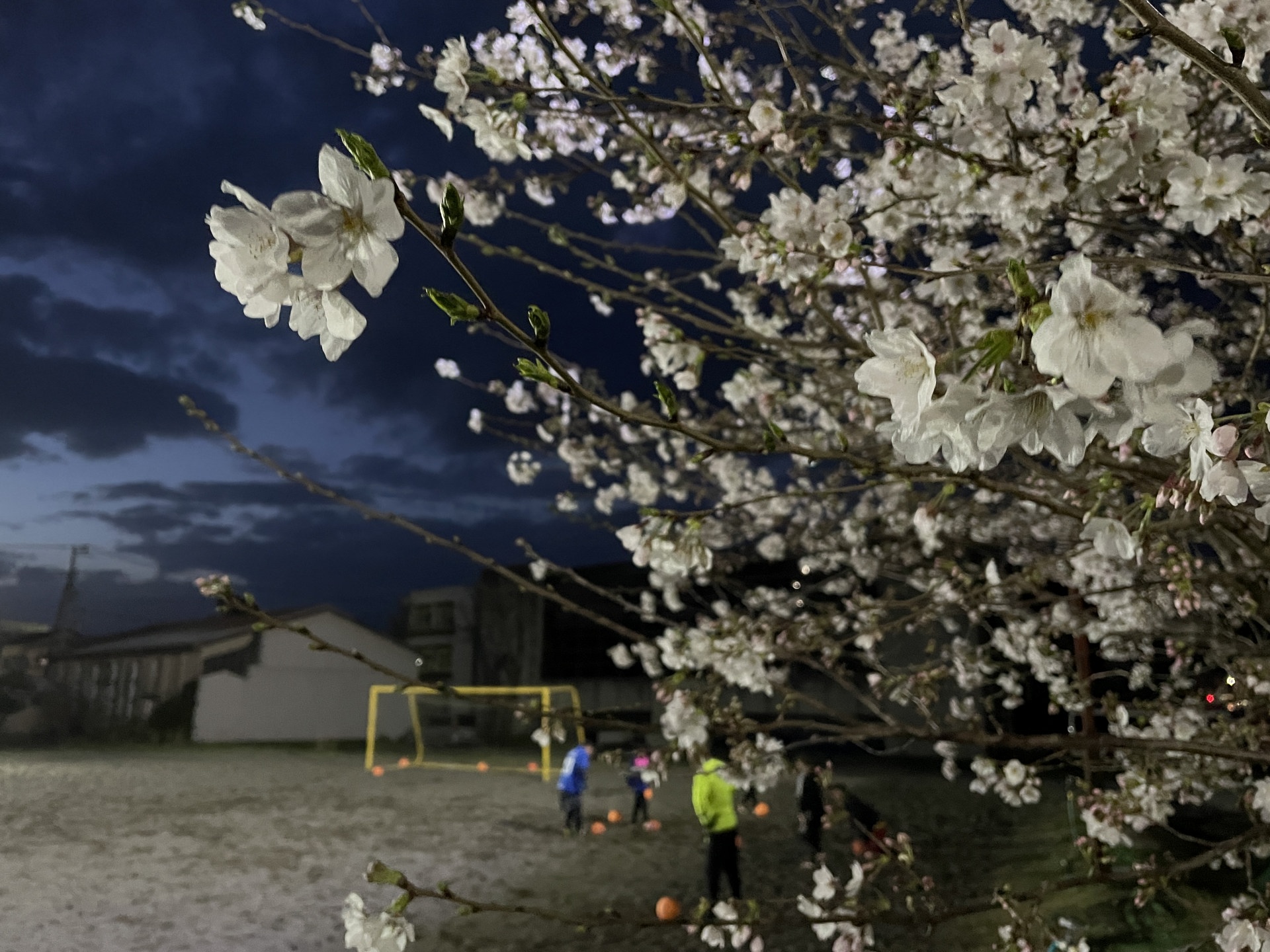 [写真:桜咲く中、楽しく蹴れました♪