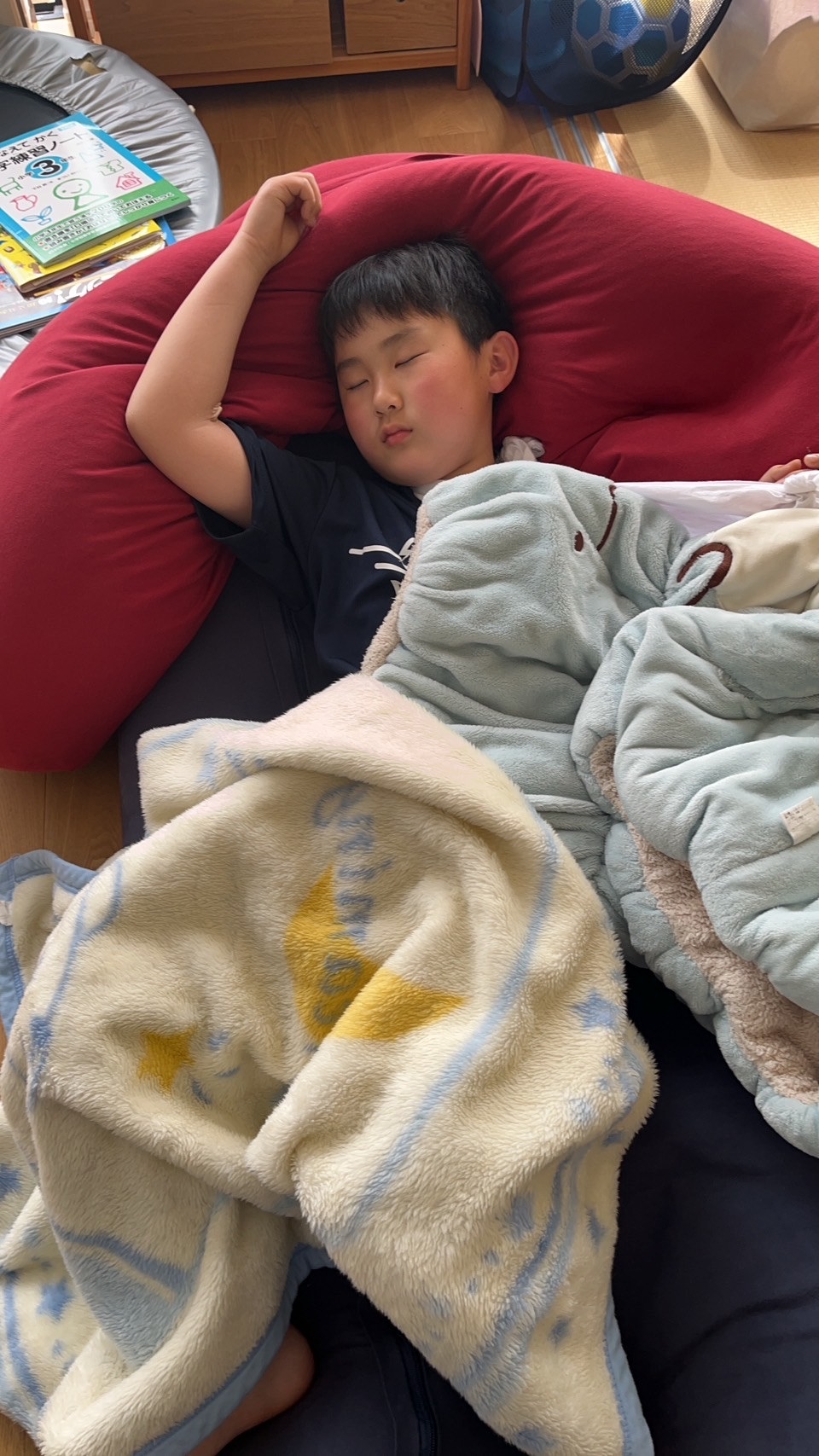 [写真:退院して安心したのか、眠りに落ちたいぶたん