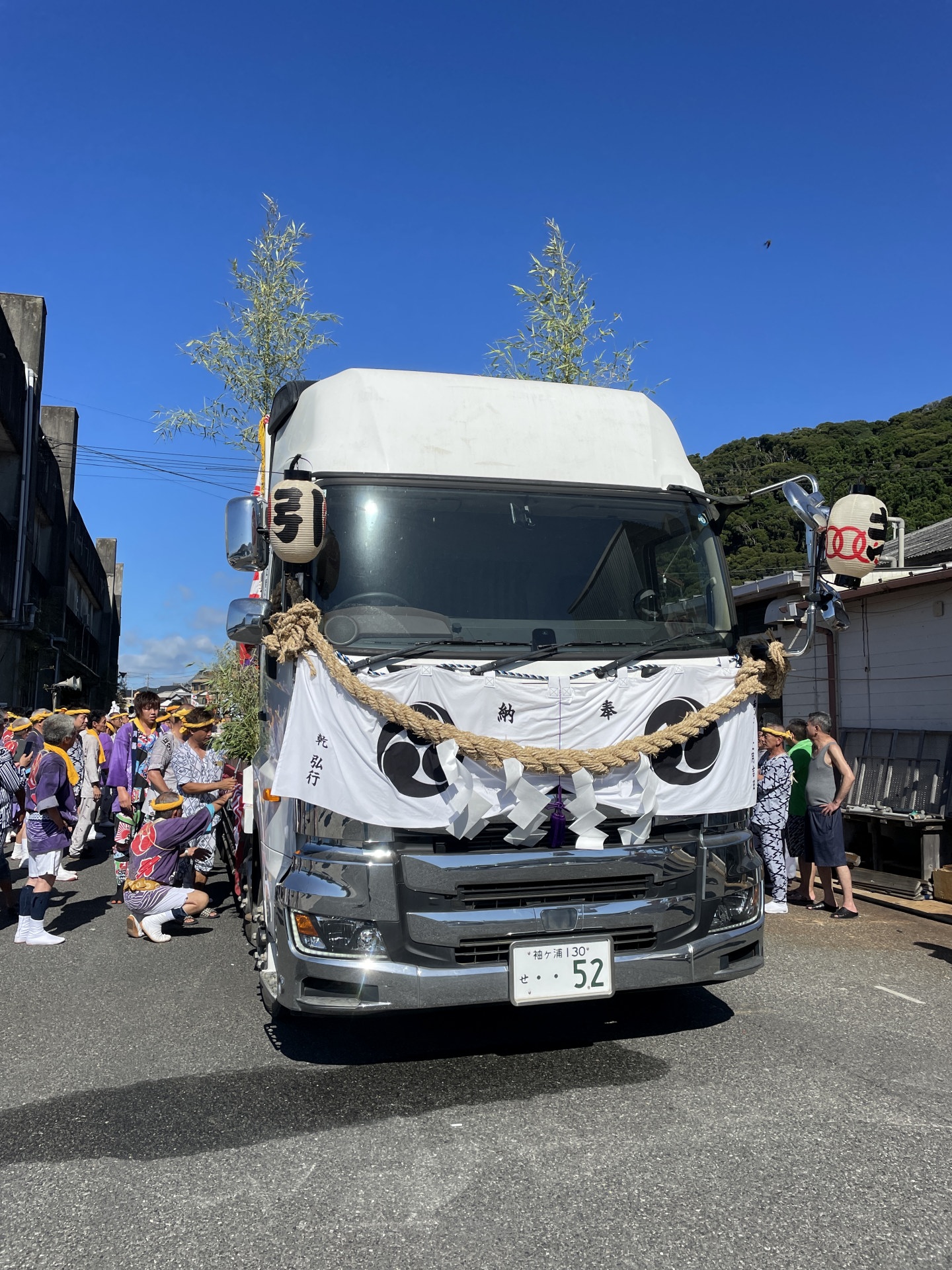 [写真:史上初!?トラックで当番町の担ぎ始めの地点まで移動