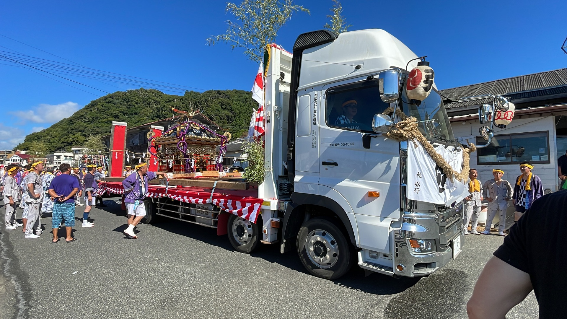 おそらく史上初の試みで、少々離れた引土町の担ぎ始めの地点まで大型トラックで運ばれることになり、担ぎ出し後、すぐに荷台へ。