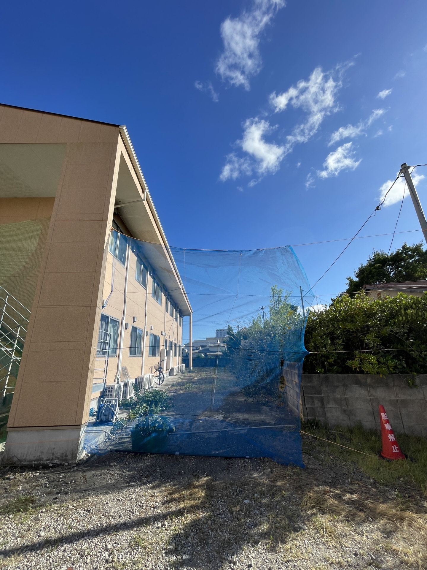 [写真:女子寮に新たな防球ネット設置